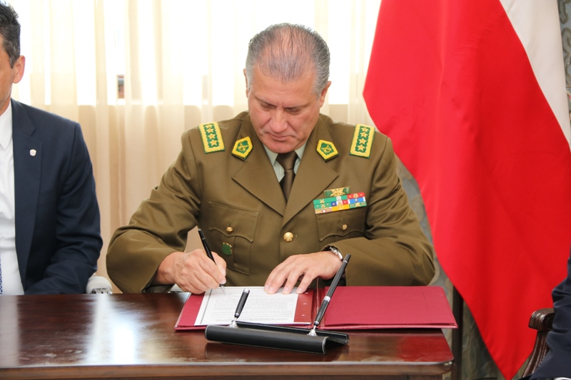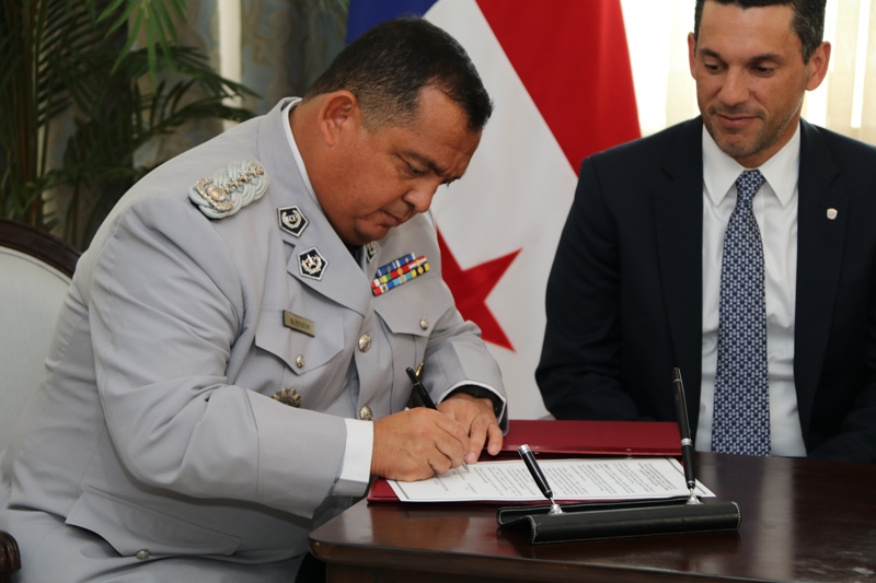 La Cancilleria fue sede de la primera reunión de alto nivel de las instituciones de seguridad de Panamá y Chile, en la cual se materializó el interés del Presidente Juan Carlos Varela y la Presidente Michelle Bachelet, en fortalecer la cooperación entre ambos países en materia de capacitación y especialización al servicio de la región. Los Presidentes de Panamá y Chile, en Reunión de Presidentes del SICA y Chile, en octubre pasado, se comprometieron en formalizar un programa de capacitación y especialización policial, con miras a implementar un Centro de Educación Policial con sede en Panamá, al servicio de la región, especialmente los países miembros del SICA, aprovechando las capacidades instaladas de Panamá de la mano con la experticia de Chile. En ese sentido, el Ministro Encargado, Luis Miguel Hincapié, acompañado del Comisionado Omar Pinzon, Director de la Policía Nacional de Panamá, recibieron la visita de alto nivel en materia de seguridad del General Bruno Villalobos Krumm, Director de Carabineros de Chile y del Prefecto General, Christian Lucero Villarreal, de la Policía de Investigación de Chile PDI, con la finalidad de concretizar la hoja de ruta para la implementación de la Cooperacion referida. En el marco de este encuentro de alto nivel, se firmó una Carta de Intención suscrita por los Estamentos de Seguridad, donde la Policía Nacional de Panamá, los Carabineros de Chile y la Policía de Investigación de Chile, manifiestan su voluntad de establecer cooperación en materia de capacitación y especialización policial en apoyo de los países miembros del SICA. Como próximos pasos, las autoridades panameñas y chilenas pactaron celebrar un segundo encuentro de alto nivel, en diciembre próximo, para oficializar la instalación de las Mesas Técnicas, para iniciar las negociaciones del Convenio Marco de Cooperacion de Capacitación y Especialización. El encuentro bilateral finalizó con la entrega de Condecoración de la “Medalla de la Policía Nacional” por parte del Comisionado Omar Pinzon, Director de la Policía Nacional, a su homólogo chileno, el General Bruno Villalobos Krumm y al Prefecto General Christian Lucero Villarreal del PDI. |
