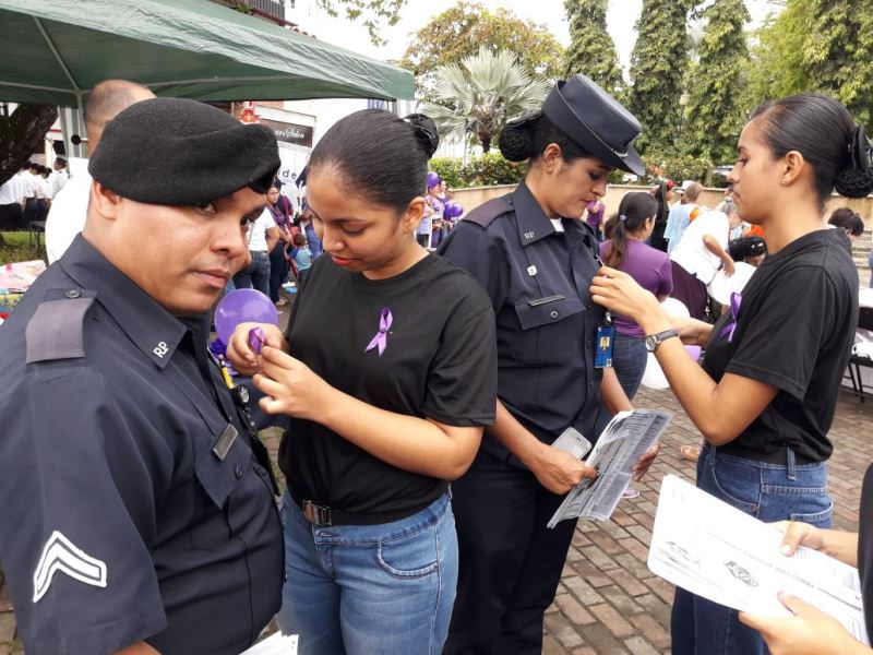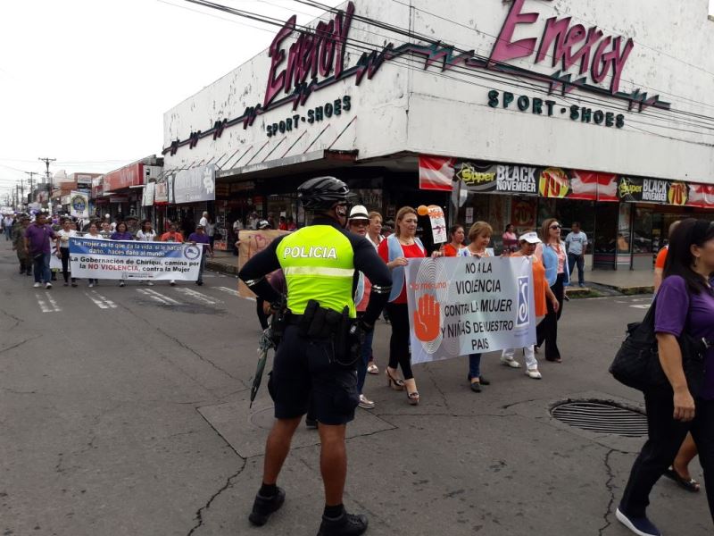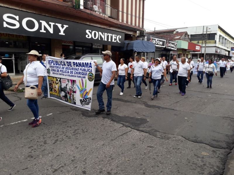 Con el objetivo de promulgar la protección de los derechos de las mujeres, las unidades de la 4ta. Zona Policial de Chiriquí, participaron de una caminata, en conmemoración al “Día Internacional Contra la No Violencia a la Mujer”, por las principales calles y avenidas del distrito de David. Esta actividad es organizada por el Centro del Instituto Nacional de la Mujer (CINAMU), iniciando en el Parque de las Madres, hasta el Parque Miguel de Cervantes Saavedra, ubicado en la ciudad de David, finalizando con un acto cultural, donde participaron diferentes instituciones gubernamentales, grupos cívicos y centros educativos. Igualmente, las unidades policiales realizaron un volante haciendo entrega de unos folletos con mensajes alusivos a la no violencia contra la mujer. Todos los participantes portaban globos y pancartas con mensajes positivos a los valores y a la unión familiar, con colores morados y blancos El Comisionado Eric Javier Amaya Sánchez, Jefe de esta Zona Policial, manifestó que la Policía Nacional, continúa orientando a los hombres y mujeres uniformados de la provincia con la finalidad de garantizar el respeto y derecho que tiene la mujer. |