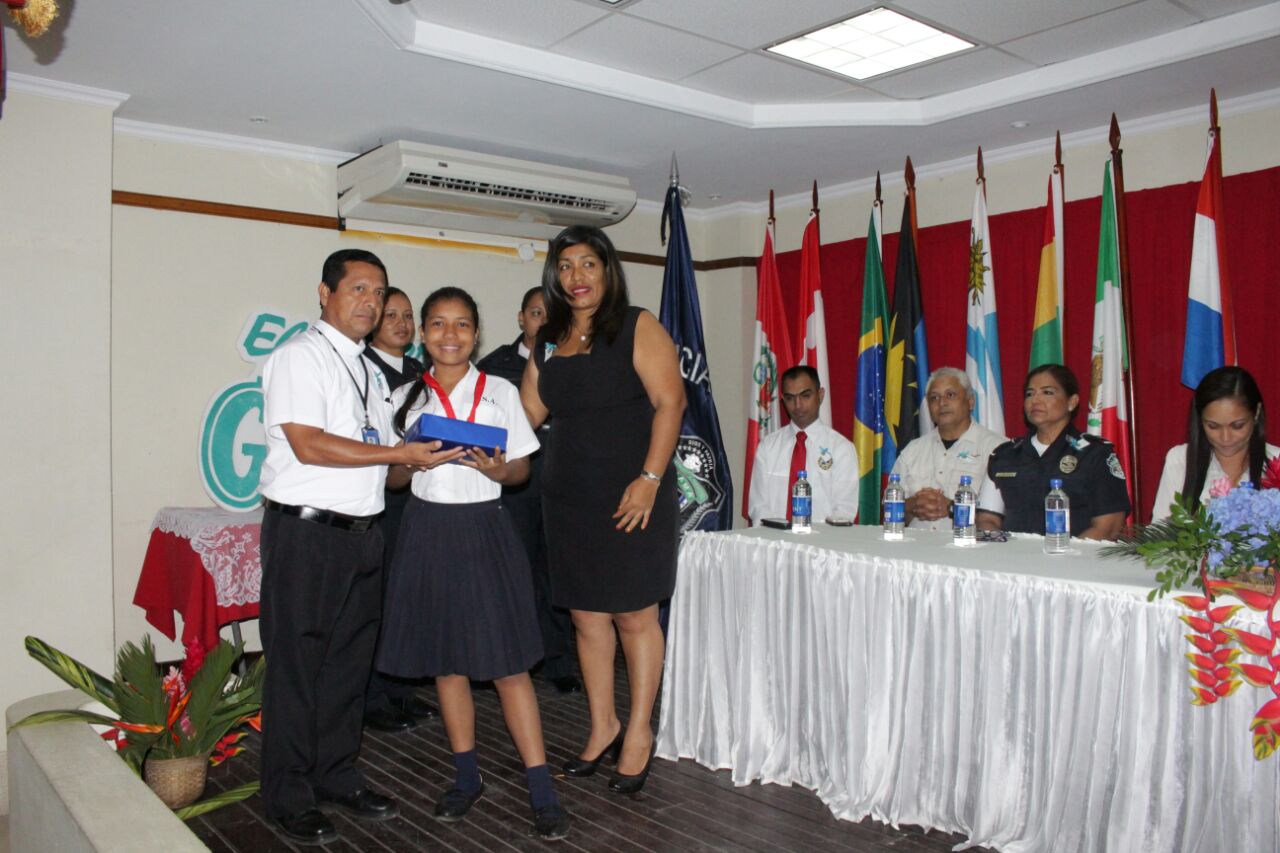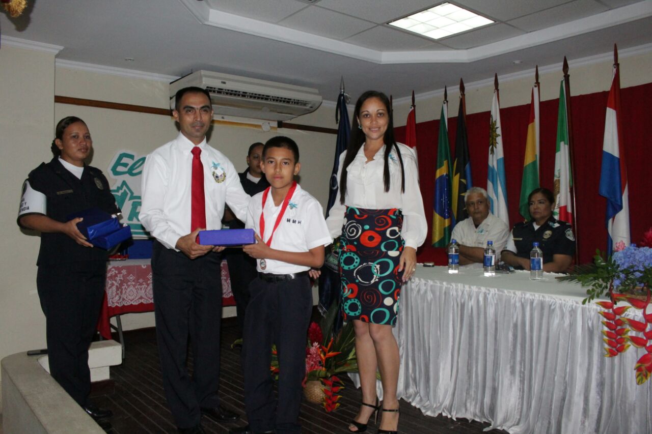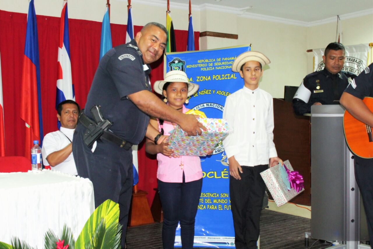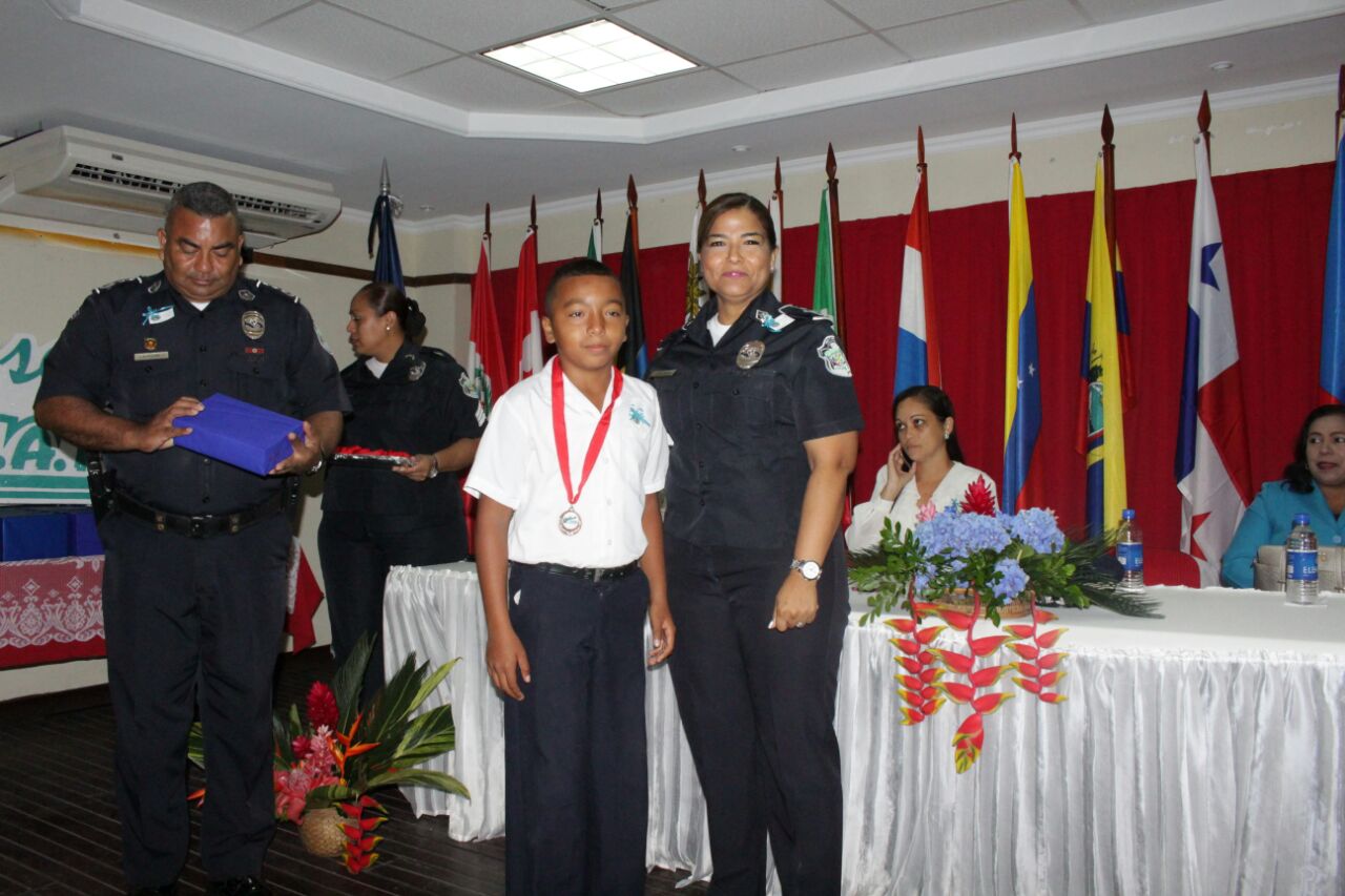 Todo un éxito fue el acto de clausura de los programas preventivos de la Policía Nacional de las provincias de Coclé y Veraguas, donde 39 estudiantes de diferentes centros educativos, fueron galardonados por su desenvolvimiento y dinamismo, en el desarrollo del curso impartido en este año 2017, acto realizado en el auditorio de la Universidad del Trabajo en la ciudad de Penonomé. A la actividad asistieron la jefa a nivel Nacional de Policía de Niñez y Adolescencia la comisionada Aida Villareal de Jaén, el jefe de Zona de Coclé, el comisionado Aníbal Prados, licenciada Sugeidy Flores, gobernadora de la provincia de Coclé, invitados especiales, padres de familias, educadores, público en general. La gobernadora de la provincia de Coclé, la licenciada Sugeydy Flores, dio la bienvenida a los presentes y felicito a la Policía Nacional por tan magno evento que llena de regocijo a las comunidades de Coclé y Veraguas, al verse beneficiados con los programas impartidos por instructores de niñez y adolescencia, comprometidos en la prevención de los niños, jóvenes, padres de familias y educadores para mejores comunidades, termino diciendo la titular. En el acto se hizo entrega de medallas de reconocimiento y obsequios por parte de las autoridades a los niños y jóvenes por su participación en los cursos de los programas preventivos, En tanto, también se conto con la participación de dos máximos exponentes de la Mejorana y participantes del programa G.R.E.A.T. de la escuela Sofía Quirós de Tejeira del distrito de Penonomé, se trata del niño Javier Bermúdez del VI grado y Dayanara Mendoza acompañados por el guitarrista, Cabo Víctor Valdez, quienes deleitaron a los presentes con un Torrente alusivo al programa preventivo, recibiendo fuertes aplausos por su intervención. Entre algunas escuelas que participaron de la provincia de Coclé fueron, Rubén Darío Carles, Sofía Quirós de Tejeira, Federico Zúñiga Filiu, Llano Marín, Aguas Blancas, Mercedes Bustamante, Caimito, República Dominicana, Farallón, Los Pollos, José Nadal Silva, La Venta, de Veraguas Escuela Santo Domingo, Atalaya y La Primavera, las mismas fueron parte de este evento tan importante.