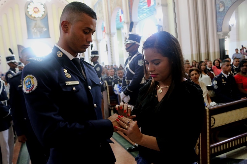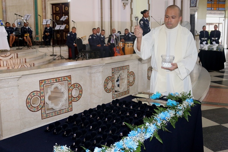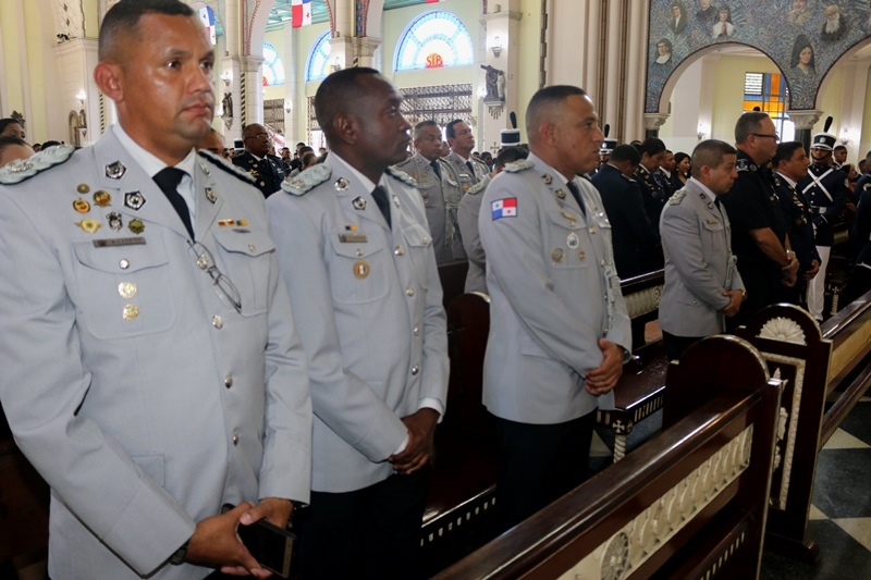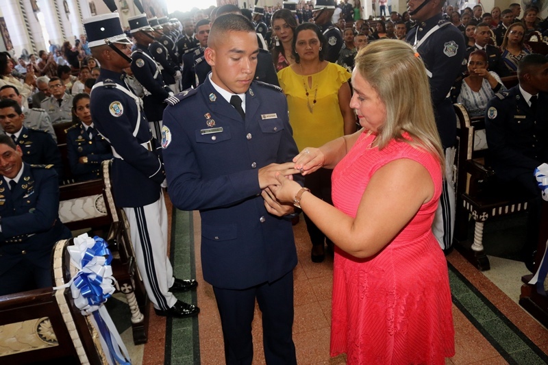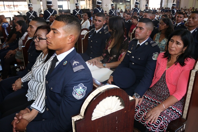 Unos 76 alféreces de la Escuela de Oficiales de Policía, Dr. Justo Arosemena (ESOPOL), de la Policía Nacional recibieron sus anillos de graduación que fueron bendecidos en una ceremonia realizada en la Basílica Menor Don Bosco. Estos futuros oficiales de la promoción XVII que pronto recibirán su título universitario en la licenciatura de Administración Policial y sus sables, estuvieron acompañados por sus padres y demás familiares, quienes le hicieron entrega del anillo bendecido. El Inspector General Julio Lasso en nombre del Director General, Omar Ariel Pinzón Marín felicitó a los alféreces y a sus familias, por este paso de gran significado para los futuros subtenientes, ya que reafirman su compromiso de afrontar los retos de la formación policial, cimentada en la disciplina, fortaleza, prudencia e inteligencia para servir a la comunidad. Los futuros oficiales de la promoción XVII quienes pronto recibirán su título universitario en la licenciatura de Administración Policial y sus sables, estuvieron acompañados por sus padres y demás familiares, estos fueron los encargados de entregar del anillo bendecido. Por su parte, el Director Nacional de Docencia, Jorge Escobar explicó que la ceremonia de bendición de los anillos simboliza el doble vínculo, del alférez con la fe en Dios cuya orientación y bendición se implora para servir a la nación con dignidad y honor, siguiendo los valores obtenidos en sus hogares y que son reforzados en la institución de seguridad. De este grupo recibieron sus anillos 67 miembros de la Policía Nacional, 4 del Servicio Nacional Aeronaval, 3 del Servicio de Protección Institucional. De igual forma dos estudiantes de República Dominicana, que reciben su formación policial en la Escuela de Oficiales de Policía, Dr. Justo Arosemena. |