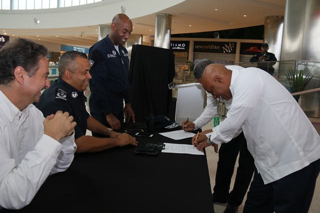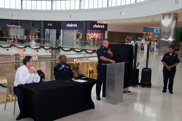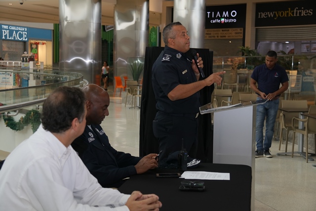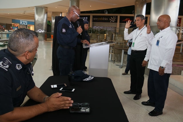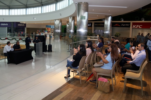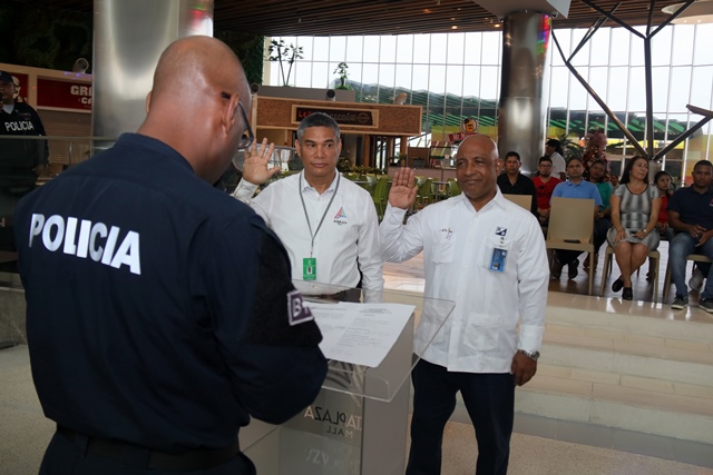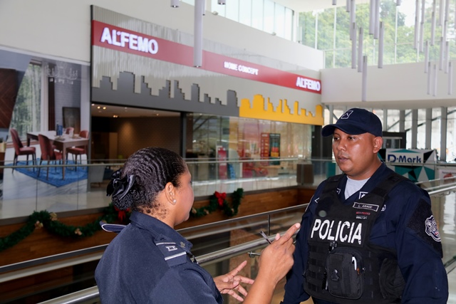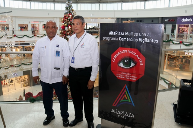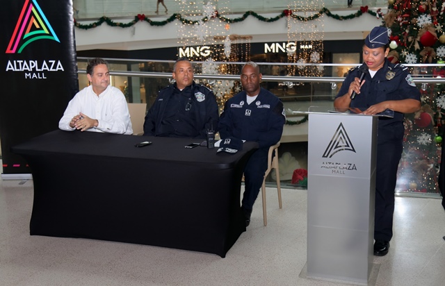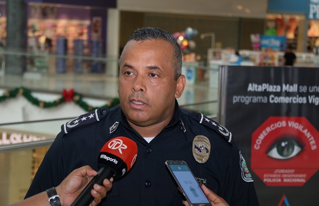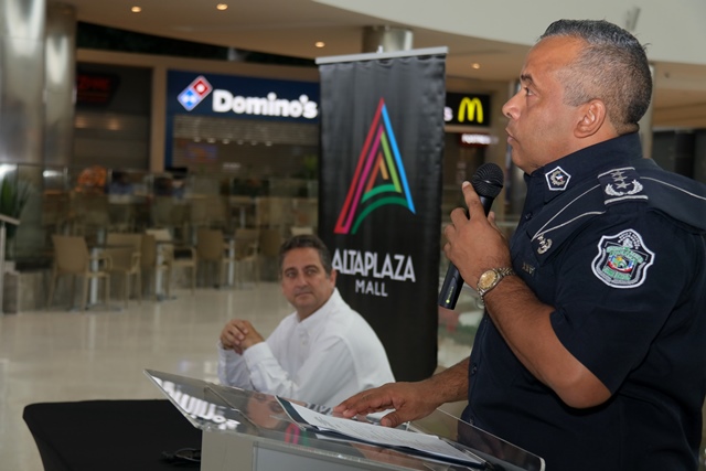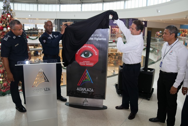 Un total de 195 comercios se sumaron al programa de Seguridad Ciudadana de la Policía nacional “Comercios Vigilantes” en el Centro Comercial de Alta Plaza Mall. Oficialmente fueron juramentados los coordinadores del programa Comercios Vigilantes, los señores Carlos Bustamante y Horacio Chao, comprometiéndose a trabajar y servir a la comunidad de manera honesta, tranparente y cumplir fielmente las normas que establece dicho programa. El Comisionado y jefe del Programa de Seguridad Ciudadana Rafael Álvarez, manifestó que se busca unir esfuerzos para disminuir los actos delincuenciales en los diferentes Mall del país. “Para Alta Plaza Mall, es una oportunidad importante tener presencia de la Policía Nacional, quienes han colaborado con nosotros desde el principio y ahora es la combinación del acuerdo entre las entidades donde se benefician todas las tiendas del Mall y eso es significativo” destacó el gerente del Centro Comercial Albert Montaner. Por su parte, el jefe del puesto policial de Condado del Rey Francisco Asprilla, indicó que se estableció un puesto policial dentro del Mall, con el fin de brindad seguridad e instruir a los comerciantes para no ser víctimas de robos y hurtos durante las fiestas que se avecinan. Mencionó además, que han bajado los hechos delincuenciales en la zona gracias a la laborar que desempeñan las unidades a diario, cumpliendo firmemente su lema de “Proteger y Servir”. En este año 2017, el Departamento de Seguridad Ciudadana del puesto policial Condado del Rey, logró inaugurar el programa en el Centro Comercial Plaza Centenial y en esta ocasión en Alta Plaza Mall en beneficio de todas las personas que visiten los comercios.