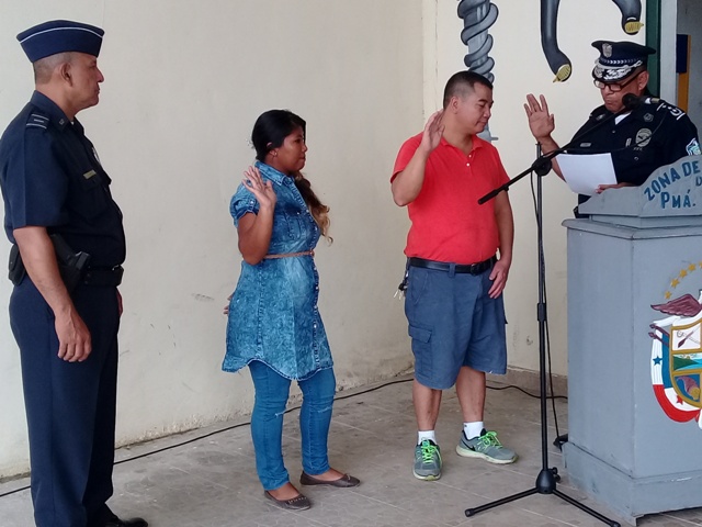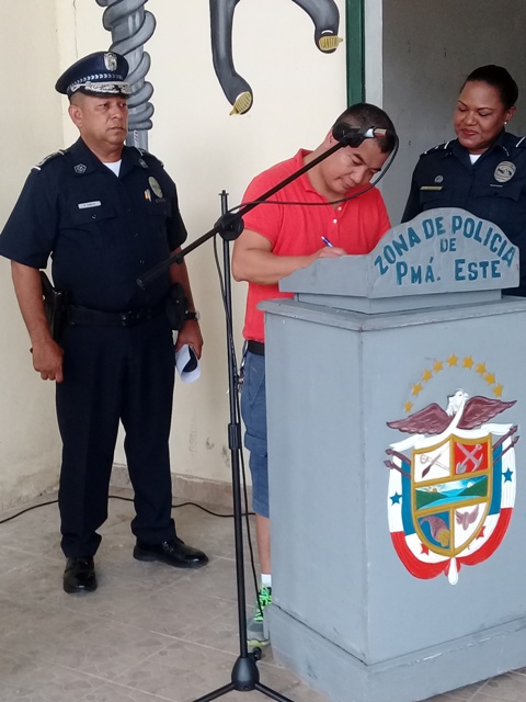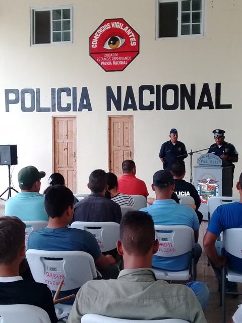 Unidades de la Policía Nacional de servicio en la Oficina de Seguridad Ciudadana de la zona policial de Chepo inauguran programa de Comercios Vigilantes en el sector de Ipeti corregimiento de Torti. Este programa cuenta con la participacion de 13 comercios que se une al grupo de programas de vigilancia comunitaria establecidos en ese apartado corregimiento, en donde la comunidad y comerciantes han unido esfuerzos en conjunto con la Policia Nacional, para minimizar actos delictivos y llevar la paz y tranquilidad a todos los sectores. Correspondio al Comisionado Federico Oberto, Ejecutivo de la zona, en nombre del señor Director de la Policia Nacional Omar Ariel Pinzon y el Comisionado Ramon Roca, jefe de la zona, dar las palabras de agradecimiento y felicitarlorlos por su alto espirito de cooperacion en la lucha contra la delincuencia. |