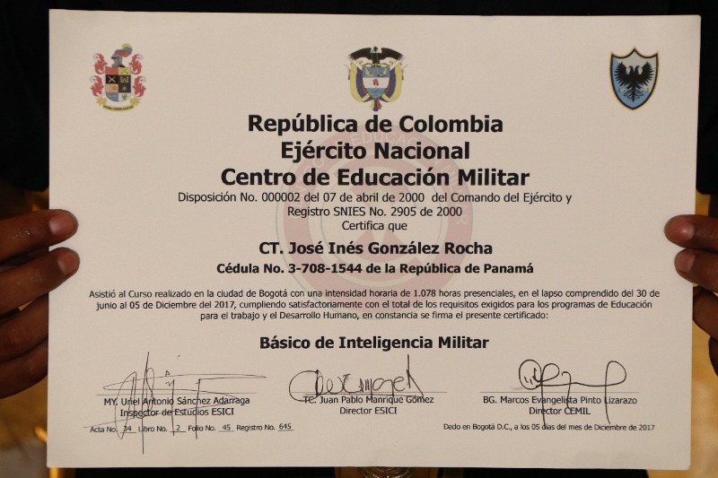 El capitán de la Policía Nacional, José Inés González Rocha, culminó satisfactoriamente el curso Básico de Inteligencia Militar que se llevó a cabo en la República de Colombia Ejercito Nacional Centro de Educación Militar en la ciudad de Bogotá, del 30 de junio al 05 de diciembre del 2017. El curso se basó en inteligencia y los procedimientos a seguir al momento de recopilar una información y poder tener un producto que dé con personas vinculadas a un hecho delictivo. El curso tuvo una duración de 1,078 horas, donde González Rocha, cumplió con el total de los requisitos exigidos para los programas de educación para el trabajo y desarrollo humano. También, obtuvo un certificado de Comunicación Estratégica, de este curso participaron unidades de los países vecinos como Costa Rica, República Dominicana y Panamá.