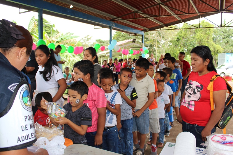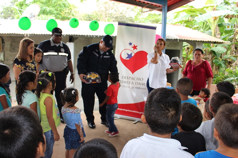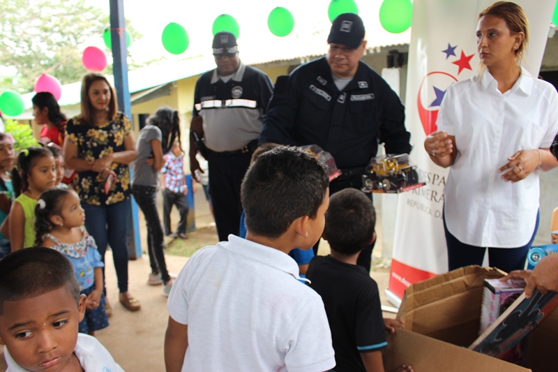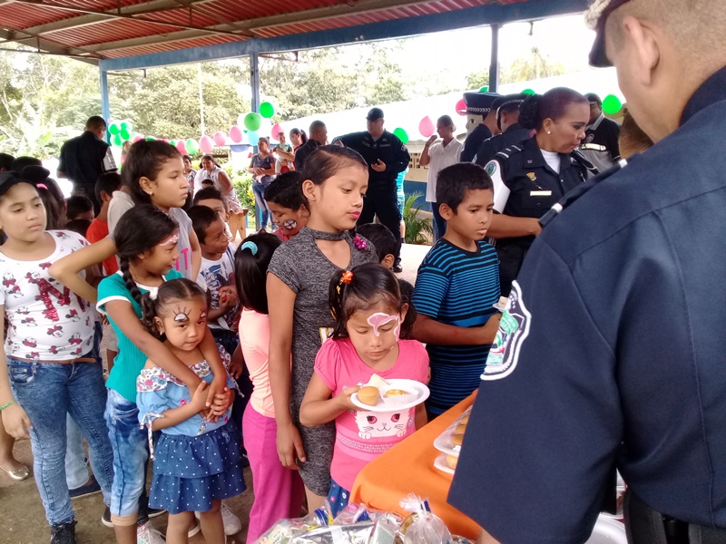 Una mañana cargada de alegría fue la que vivieron los niños y niñas de la escuela de Huile en el corregimiento de Santa Clara, distrito de Arraiján, gracias al altruismo de las unidades de la Policía Nacional de la Treceava Zona Policial, encabezada por los Comisionado Luis Navarro y del Despacho de la Primera Dama de la República. La delegación policial llegó al centro educativo, junto a "Polito" quien fue del gusto de los presentes. El rostro de cada niño se iluminó de alegría, satisfacción y agradecimiento al ver a las unidades del Servicio de Policía de Niñez y Adolescencia quienes distribuyeron obsequios, dulces, comidas, refrescos, piñatas. Al final todos los niños recibieron los juguetes de manos del Comisionado Navarro, la licenciada Eneldina Lasso, del despacho de la Primera Dama y el teniente Jesús Palacios, encargado de Seguridad Ciudadana Los educadores del plantel agradecieron a la Policía Nacional y al Despacho de la Primera dama el gesto que han tenido con los niños de ésta comunidad.