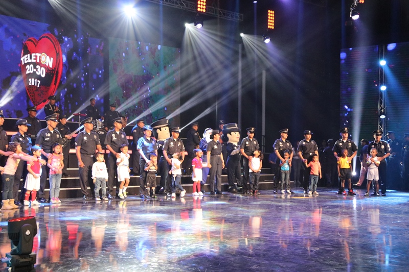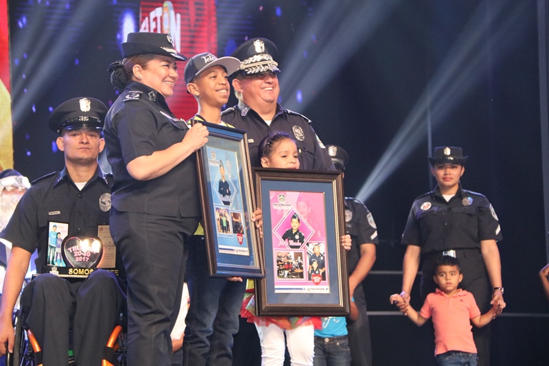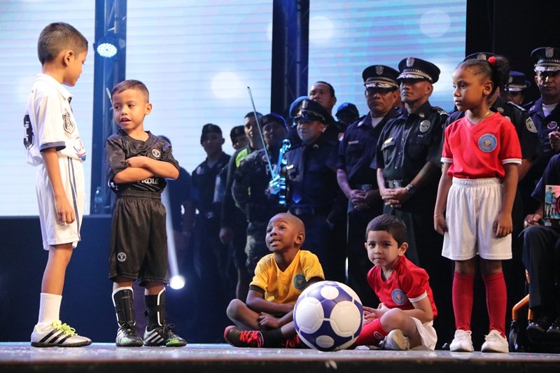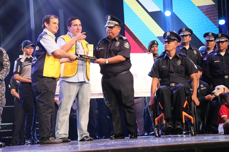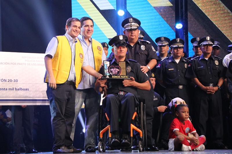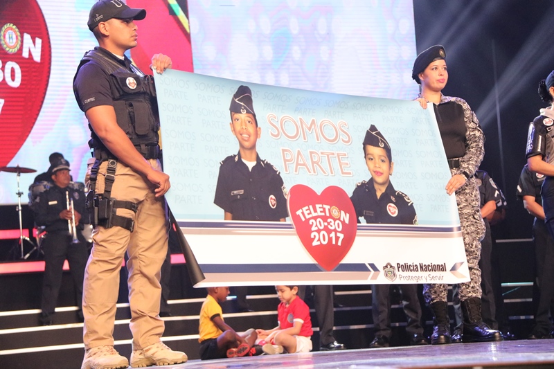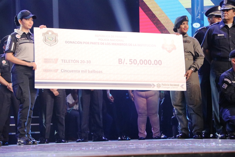 “Dentro del rol policial, nunca dejaremos la parte humana, que siempre es inculcada a cada uno de los que se forman dentro de nuestras filas, nosotros como institución siempre estamos dispuestos a colaborar en beneficio de la niñez”, indicó el Director de la Policía Nacional Omar Pinzón durante la presentación de la Policía Nacional este sábado 16 de diciembre en la Teletón 20-30 2017 que este año tiene como lema “somos parte”. “La institución policial se solidariza con esta iniciativa desarrollada por la Teletón 20-30” añadió Pinzón. Una delegación conformada por Oficiales y clases de la Policía Nacional, fue la encargada de entregar, la donación de 50 mil dólares, a la Teletón 20-30 2017. Este aporte fue realizado por los 18 mil hombres y mujeres que integran la fila de la institución que como cada año se unen para apoyar esta noble causa, que este año tiene como meta la construcción de un Banco de Tejido y el primer Centro Nacional de Epilepsia. El show preparado para los presentes inició con un grupo de niños del Centro de Orientación Infantil (Coif) de la Policía Nacional, los cuales realizaron una lucida dramatización de la labor policial. Luego la parte musical, donde unidades policiales juntos a la niña María Ángel, acompañados de la orquesta de la institución interpretaron la canción, “Abriendo Caminos”, de los cantautores Juan Luis Guerra y Diego Torres. El Director General Omar Pinzón entregó a Daniel y Joseliz, niños símbolos un reconocimiento, llamándolos héroes. Desde hace 15 años la policía nacional se suma a los esfuerzos como patrocinador de la teletón 20-30, apoyando a la niñez panameña, contribuyendo así a mejorar su calidad de vida.