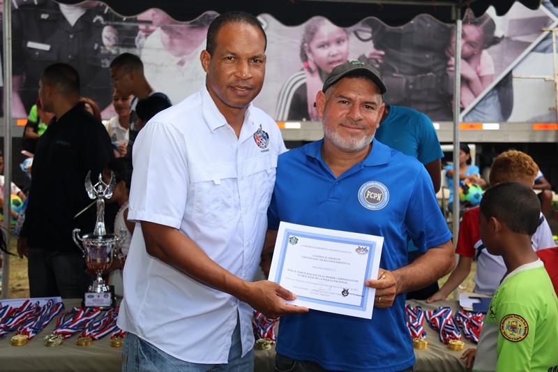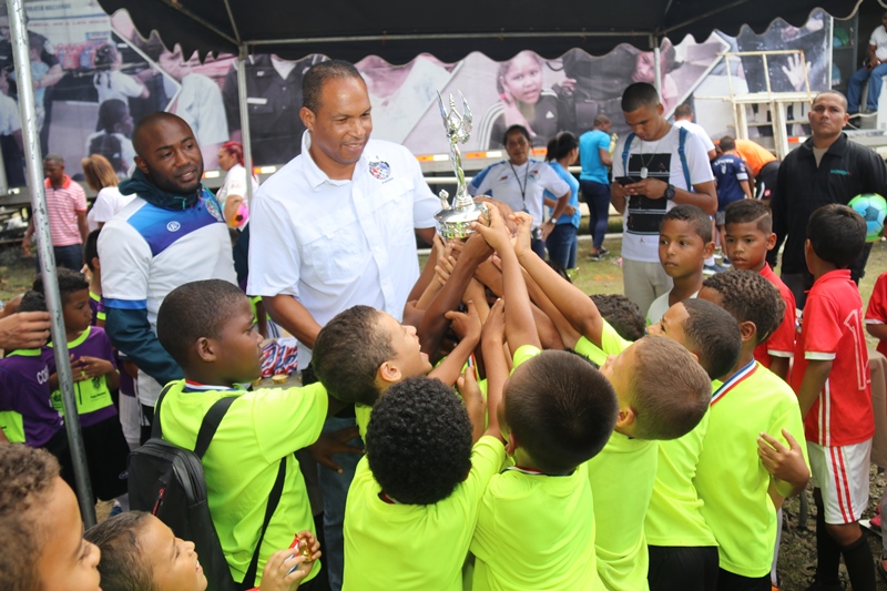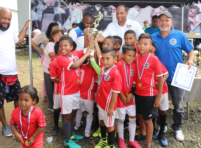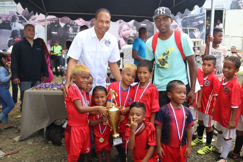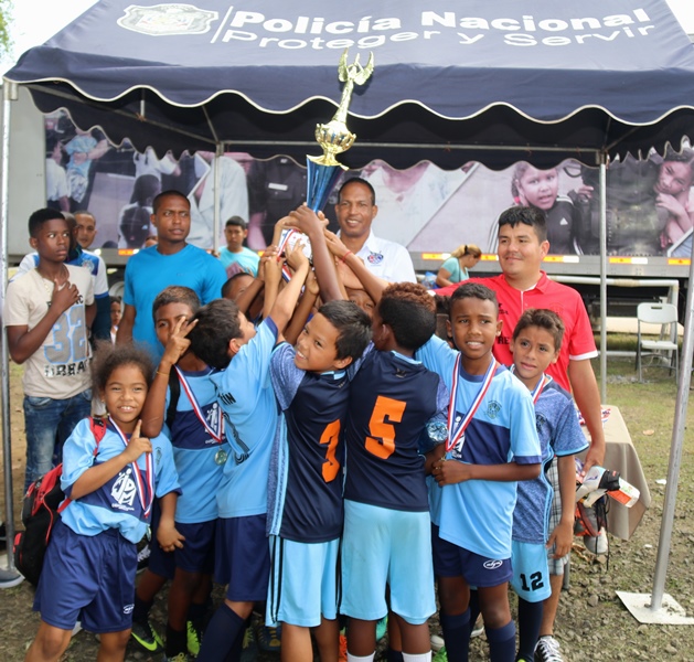 Los niños de la Academia de Fútbol S.D. Atlético Nacional se alzaron campeones en la categoría sub-7, en la final de la “Copa Policía Nacional”, tras vencer 3-2 al equipo de Costa del Este. En esta final que se realizó en la cancha de la sede de la institución, ubicada en Ancón participaron equipos de Panamá Norte, San Miguelito y Felipillo en las categorías sub-5, sub-9, sub-11 y sub-13. El entrenador del equipo de la Academia de Fútbol S.D. Atlético Nacional, Ricardo Harper dijo que esta actividad permite a los niños del equipo de la Policía Nacional compartir con miembros de otros clubes de diferentes sectores, como parte de los programas de convivencia pacífica que desarrolla la institución. Se trata de fortalecer valores, el espíritu deportivo para promover la cultura de paz. Adicional, estas iniciativas fomentan en ellos, el deseo de superación y los forma como futuros talentos del fútbol nacional, agregó Harper. También los jóvenes de la sub-17 del Atlético Nacional, presentaron su copa como campeones de esta categoría, en la Copa Internacional Gatorade, #BAM, la Batalla en alta mar; un reto entre Costa Rica y Panamá que se jugó en el primer barco estadio, en la frontera marítima entre los dos países. Los juegos previos de la “Copa Policía Nacional”, reunió a jóvenes y niños de los diferentes corregimientos del distrito capital, San Miguelito y Panamá Oeste. |