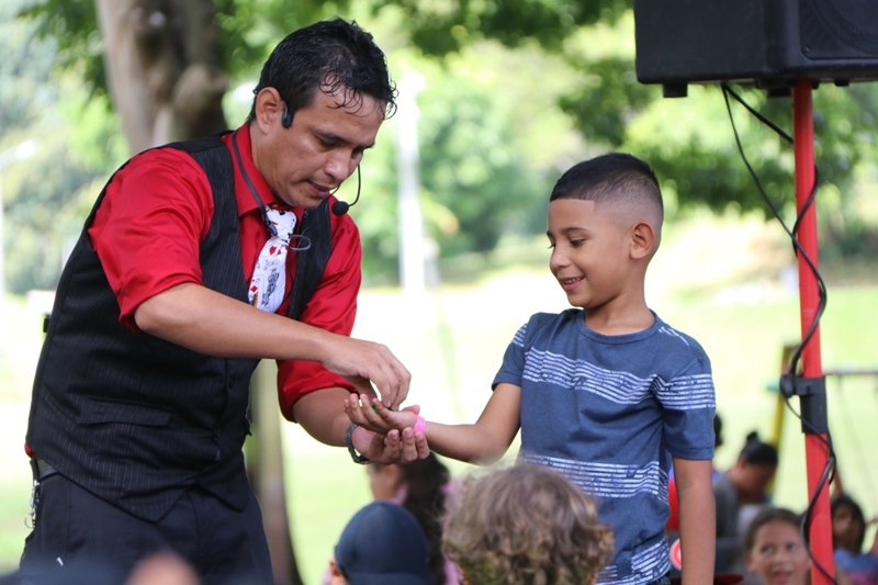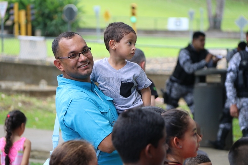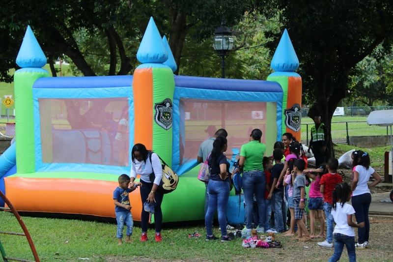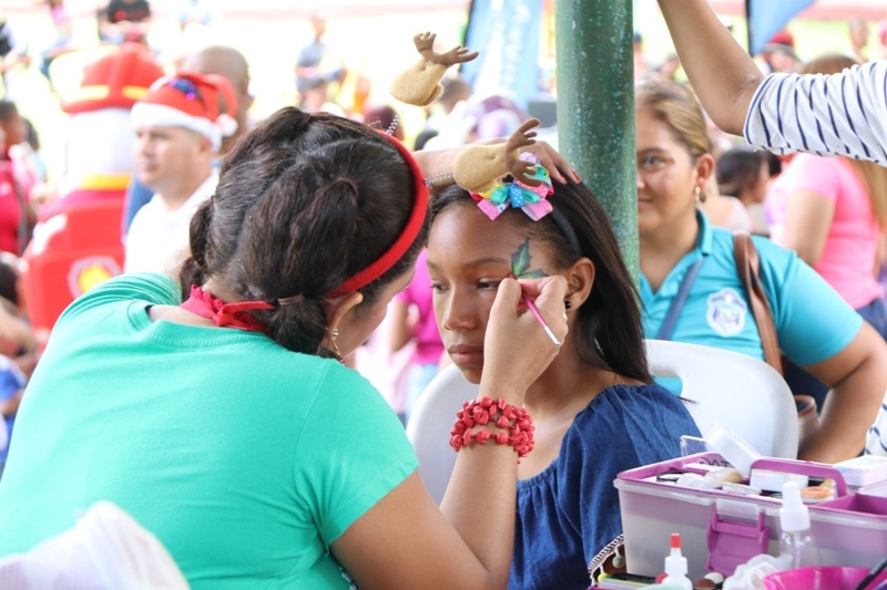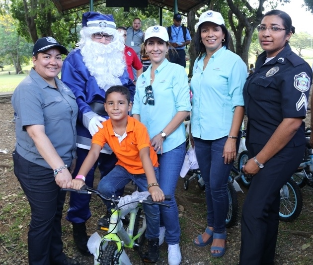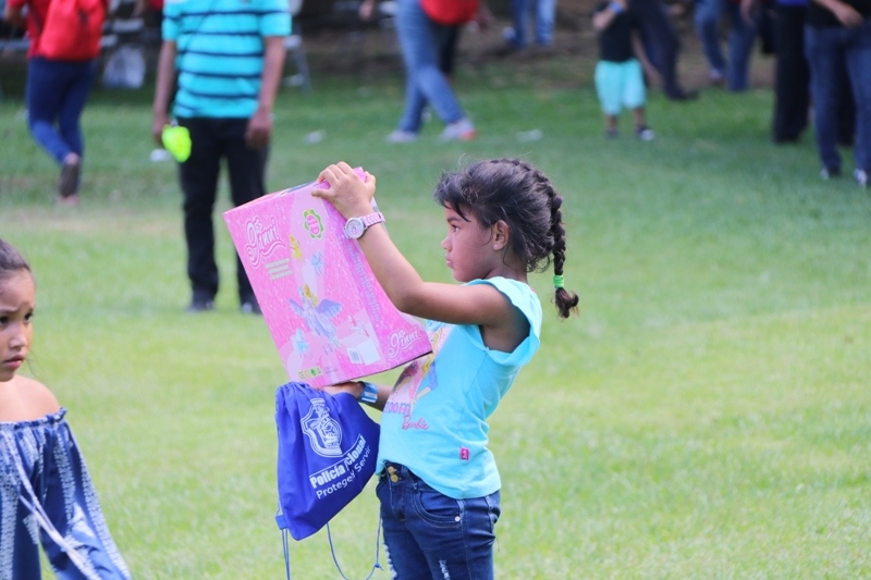Un día maravilloso cargado de risas, magia y juegos, vivieron cientos de niños y niñas, hijos de miembros juramentados y no juramentados de la Policía Nacional, en el agasajo “Fiesta de Navidad”, organizado por la institución y las Damas A.S.U.L en el Parque Recreativo Omar. El Director General Omar Ariel Pinzón Marín agradeció a las unidades y miembros no juramentados por el apoyo brindado durante todo el año. “Para nosotros como institución es importante compartir con la niñez, brindándole esta momento de esparcimiento y más para esta bella época, como lo es la Navidad” añadió Pinzón. Los pequeños disfrutaron de las actividades como: bailes, canto, pinta caritas, juegos, tirolinas, pop corn, algodón de azúcar, hot dog. También tuvieron la sorpresa de compartir y hasta tomarse fotos con sus personajes de las cómicas favoritas y los muy queridos Polito y Polita. Y las atracciones artísticas no se hicieron esperar, con la presentación de la Unidad Canina, que mostraron sus destrezas y habilidades, muy aplaudidos por los presentes. El show de magia, acaparó la atención de grandes y pequeños, con los diversos trucos y juegos. Las asociación Damas A.S.U.L, estuvieron presentes realizando la entrega de regalos y bicicletas a los niños.