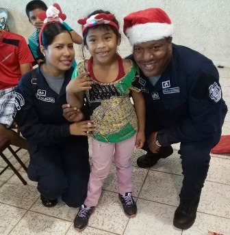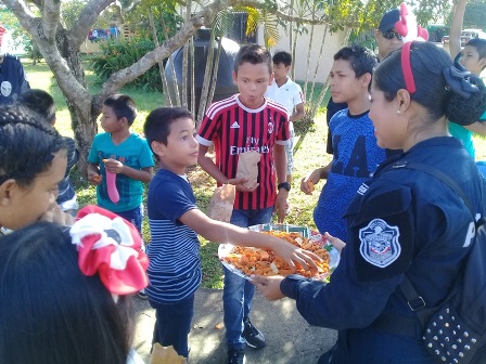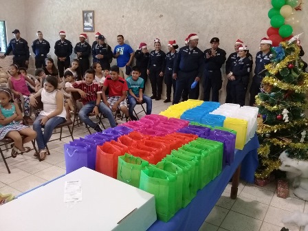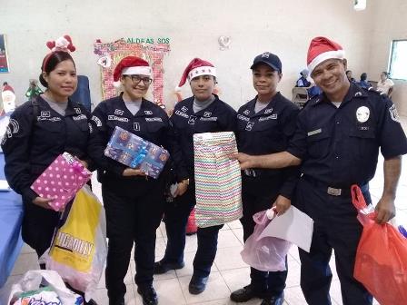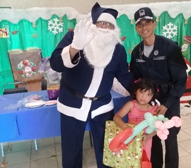 Las unidades del Grupo de Apoyo Rápido, “G.A.R.” de la 4ta. Zona policial de Chiriquí organizaron una fiesta de navidad mágica y divertida a los niños de las aldeas S.O.S., ubicada en la ciudad de David. El evento se realizó con la finalidad de llevar alegría a estos niños y jóvenes, logrando obtener una sonrisa en la cara de estos pequeñitos. La actividad dio inicio con las palabras de reflexión por parte del Subteniente Carlos Ruiz, del departamento de Seguridad Ciudadana, mientras que la bienvenida las dio el Mayor Antonio Domínguez, encargado en turno del G.A.R. de esta Zona Policial, manifestó que se siente muy contento y orgulloso con las unidades policiales, quienes hicieron con mucho amor este agasajo para los niños y niña de las Aldeas SOS. “Los niños son el futuro y en ellos debe reposar lo mejor de cada uno de nosotros, dediquemos tiempo en enseñarles la importancia de la navidad, ya que es la mejor oportunidad para crear bellos recuerdos en los más pequeños”, acoto el mayor Domínguez. Los chiquitines se deleitaron con la presentación del Grupo Juvenil Canino “GRUJUCAN”, de la 4ta. Zona Policial, a cargo del Subteniente Héctor García, quienes efectuaron demostraciones de obediencia, trucos y habilidades con los canes. Igualmente, tuvieron la visita de Santa Claus y Mickey Mouse, disfrutaron de los paseos a motos con el grupo de los “Lince”, brinca brinca, algodón de azúcar, palomitas de maíz, globos, regalos, dulces, helados, piñatas, canastitas y las pinta caritas de la Unidad Preventiva Comunitaria (U.P.C) de Pedregal y los miembros no juramentados del CAIPI “Centro de Atención Integral de la Primera Infancia”, Fuente del Saber, en la provincia. |