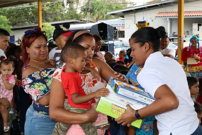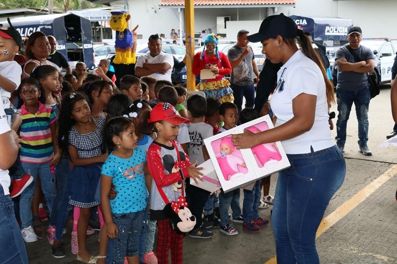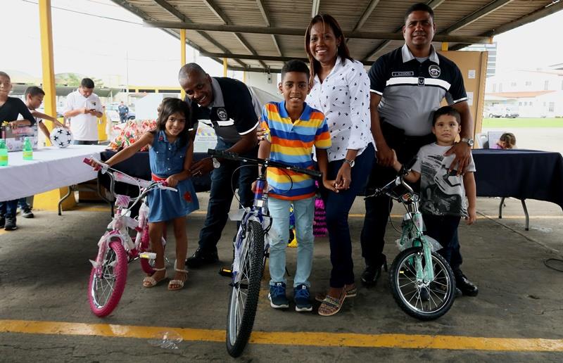 Unos 220 niños, todos hijos de los uniformados que conforman el Grupo de Apoyo al Servicio (GAS), pasaron un día familiar en las instalaciones de la sede principal de la Policía Nacional en el corregimiento de Ancón. Los pequeños de la casa disfrutaron de pinta caritas, juegos, show de canes de la escuadra de agilidad y destrezas de la Policía Nacional, brindis y cada uno se llevó un regalo a su casa. El comisionado Irving Sánchez, jefe del GAS, indicó que se busca que los hijos de los uniformados compartan y se diviertan entre si y pasen momentos agradables. Por su parte, el mayor Jaime Alzamora dijo que esta actividad para los hijos de las unidades es parte de las obras sociales que llevan a cabo, entre ellas jornada de limpiezas en beneficio de todos los panameños. Entre los regalos que recibieron los niños había juegos de monopolio, muñecas, patines, bicicletas, balón de fútbol, carros juego de bolos entre otros. Nuestras unidades siempre dispuestas a compartir y pasar momentos agradables con sus hijos y familiares, sin descuidar su compromiso fiel y constante de Proteger y Servir. |