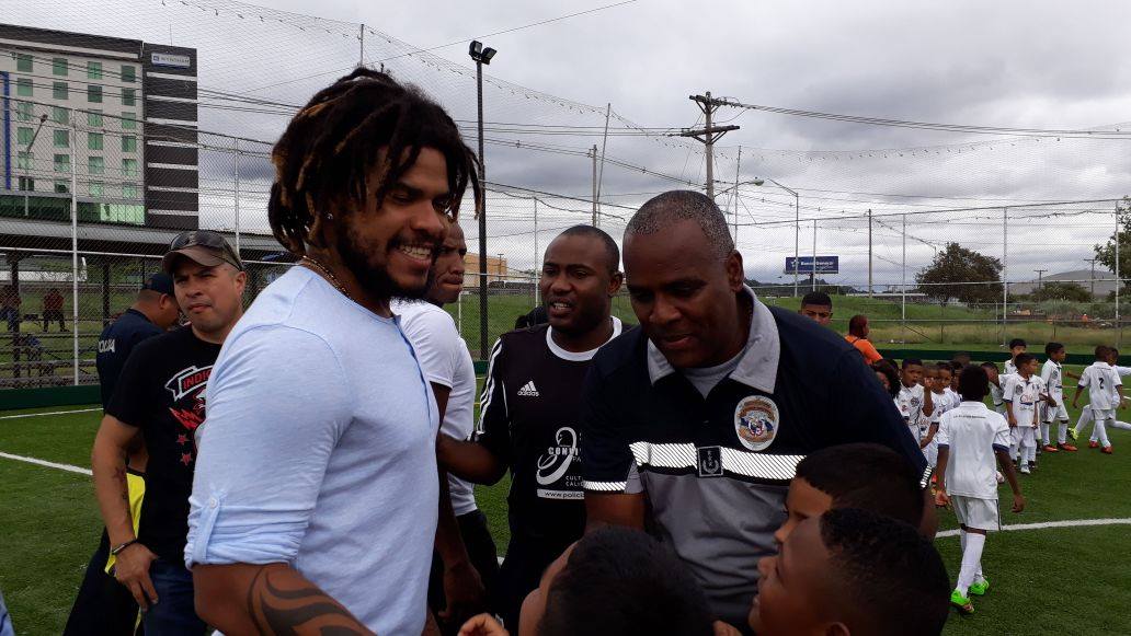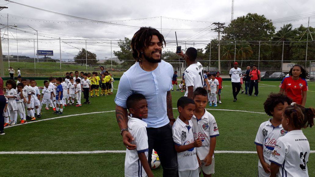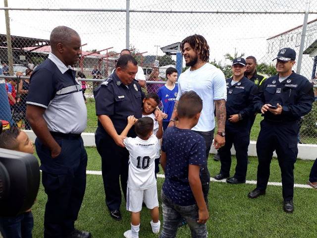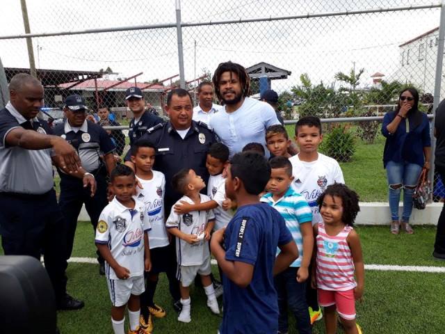 "Tienen que estudiar, hacerle caso a sus padres, portarse bien, ser respetuosos, disciplinados, esforzarse por alcanzar sus sueños y metas, confiando siempre en Dios”, fueron las palabras que Román Torres, seleccionado de fútbol nacional, expresó a los niños y niñas de las diversas categorías de la Sociedad Deportiva Atlético Nacional de la Policía Nacional. El capitán de la Selección de Futbol de Panamá, que nos representará este año en el mundial de Futbol en Rusia 2018, compartió con los pequeños futbolistas en la inauguración de “Verano Feliz” de la Policía Nacional, que inicia a partir de este 3 de enero y se extiende hasta el sábado 24 de febrero. El Director General de la Policía Nacional, Omar Ariel Pinzón Marín, agradeció a Torres por haber compartido con estos niños y niñas, que lo ven como un héroe, una inspiración en esta disciplina deportiva. Niños y niñas que integran la escuela de fútbol de la Sociedad Deportiva Atlético Nacional de la Policía Nacional, compartieron y disfrutaron de una clínica deportiva que les dictó Román mejor conocido como el “mazinger”. Además hicieron un juego amistoso, donde los niños demostraron al futbolista sus dotes en esta disciplina deportiva, haciéndoles saber del talento que existe en ellos. Los pequeños quienes reflejaban en su rostro la alegría de conocer al hombre que anotó el gol, que le dio la oportunidad al país de estar en su primer mundial, a su vez aprovecharon la ocasión para tomarse fotos con este héroe del balompié. El programa de Convivencia Pacífica está integrado por niños diferentes sectores del país, para que se unan al equipo de fútbol Atlético Nacional, dándoles que oportunidad a través del fútbol realicen deporte y sean seres integrales.