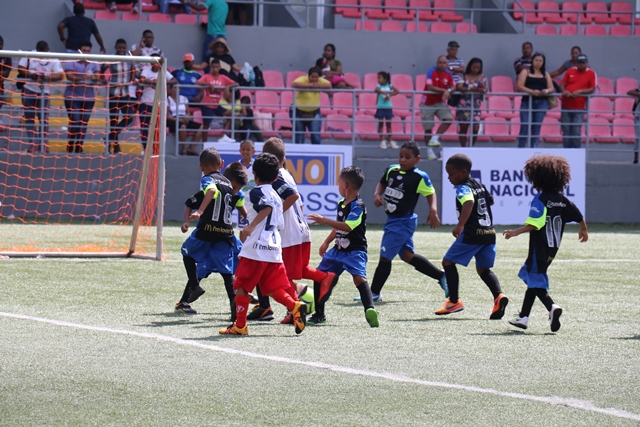 Los equipos de la Sociedad Deportivo Atlético Nacional que participan en el Mundial del Barrio “Copa Grupo Rey Activo 20-30” tuvieron su primer encuentro la mañana de este martes 16 de enero en el Estadio Maracaná ubicada en el corregimiento del Chorrillo. En esta primera jornada se enfrentaron en la categoría sub 9 el equipo que representa a la Policia Nacional con goles de los niños José Ovalle, Gabriel Quiroz y Jossimar Esturain venciendo 5 a 1 al equipo de Barrio Lindo. Mientras que en las categorías sub 7,11 y 13 quedaron en el cuadro con un resultado no favorable. Los partidos continuarán la tarde de este martes, donde se enfrentarán la sub 5 Atlético Nacional vs Pedro Obarrio y en la categoría femenina sub 17 Atlético Nacional vs Barrio Lindo. La Copa Mundial del Barrio 2018 que inició el pasado 12 de enero y culminará el 23 de febrero, contará con la participación de 10,500 niños de 41 sedes a nivel nacional, con más de 6,300 partidos en todo el país. |