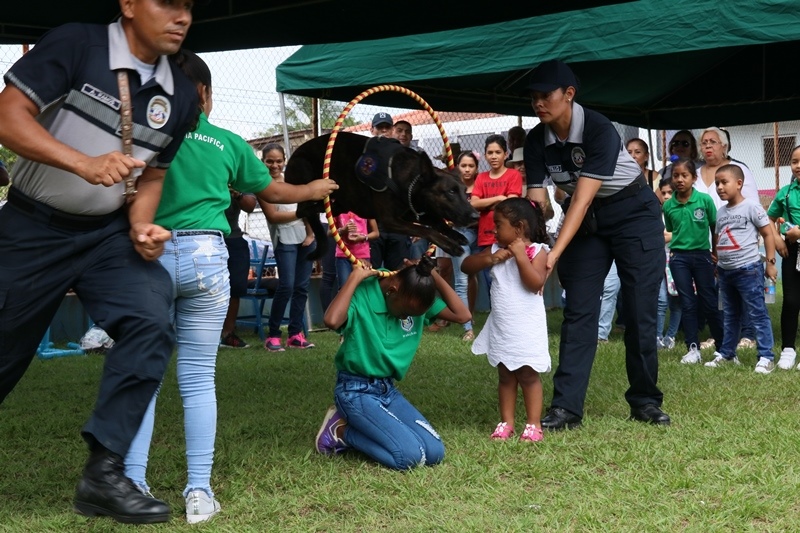 En marco a la celebración del día del vecino vigilante, unidades de la Policía nacional participaron de tarde de charlas y actividades con residentes de la comunidad de Chanis, corregimiento de Parque Lefevre. Los residentes integrantes de Vecinos Vigilantes, programa de Seguridad Ciudadana que lleva a cabo la Policía Nacional, disfrutaron de las presentaciones artísticas y culturales. La Unidad Canina, fue una de las más aplaudías con los canes que demostraron al público sus habilidades y destrezas. Mientras que un grupo de unidades Linces en sus motocicletas, paseaban a los más pequeños que querían vivir la experiencia, de subirse en ella. El Subcomisionado Luis García, indicó que este tipo de acercamiento con la comunidad contribuye focalizar las estrategias sectoriales para combatir la delincuencia. Dentro de la actividad se dictaron charlas para adultos y menores sobre las Seguridad Vial, la responsabilidad del conductor y el peatón, entre otros temas. Las unidades del tránsito realizaron un circuito, para que los niños aprendieran las señales viales, utilizando bicicletas. |