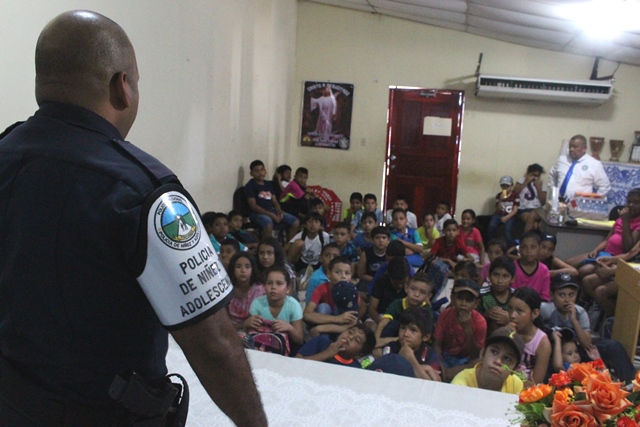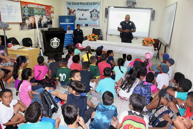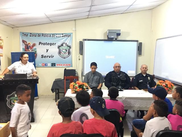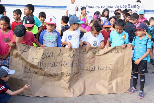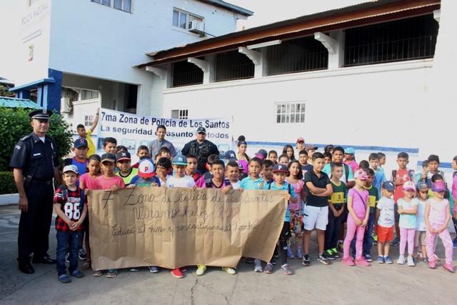 Las unidades de la 7Ma Zona de Policía de Los Santos inició este lunes 22 de enero, el tan esperado “Verano Feliz”. El Capitán Carlos García, se dirigió a todos los niños, exhortándolos a que aprovechen y disfruten de todos los conocimientos que se les brindará. De igual manera recibieron una charla sobre el uso de las Drogas por parte del Sargento Miguel Quiel de la Policía de Niñez y Adolescencia. "Este año inscribimos a más de 70 niños en las edades de 6 a 12 años, los cuales estarán recibiendo durante toda la semana por parte de la Policía y PANDEPORTE, clases de natación, voleibol, futbol y charlas informativas" destacó. Agregó que con esta actividad se refuerza el acercamiento de la Policía Nacional con la niñez panameña y ayudarlos a ser parte positiva del país. En el acto de inauguración del Verano Feliz 2018, estuvieron presentes el Subcomisionado Cesar Zambrano, ejecutivo de la 7Ma Zona, El Capitán Carlos García, encargado del departamento de Seguridad Ciudadana, El Padre Álvaro Sáez, Párroco de la Iglesia Santa Librada de Las Tablas y la Licenciada Keyla Valdés, en representación de PANDEPORTES. |