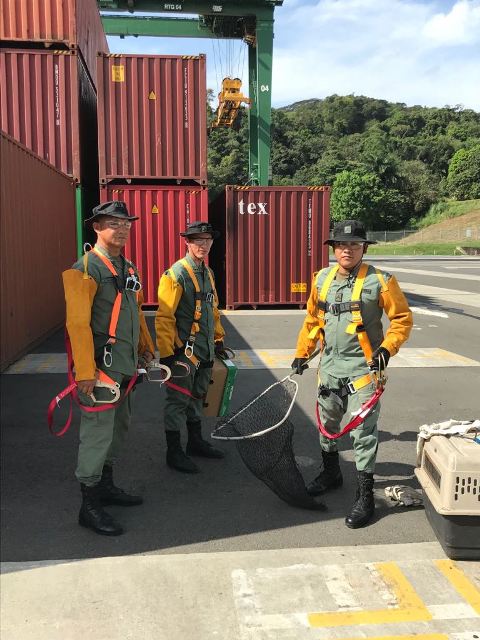 Las unidades de la Policía Nacional de servicio en la Dirección Nacional de Policía Ecológica en conjunto con funcionarios de Mi Ambiente, rescataron el nido con huevos de un águila identificada como “Caracara” en el puerto de Rodman. Los nidos de esta ave que se encuentra en peligro de extinción, fueron ubicados tras una llamada de un empleado de la empresa de contenedores quienes solicitaban ayuda, debido a que en dos grúas se mantenían los nidos, por lo que las águilas agredían a los operadores. Los uniformados procedieron al lugar donde se colocaron los equipos de seguridad (arnés y mangas de cuero) y subieron a la grúa para rescatar los huevos que estaban en sus nidos. La subcomisionada Sheila Cedeño jefa de la Policía Ecológica, explicó que se trata de una especie protegida por ley en la República de Panamá y que seguirán uniendo esfuerzos para cuidar los animales y bosques. Agregó que los huevos serán entregados al Parque Natural Metropolitano para su ubicación ya que la madre águila no se ubicó. A diario la Policía Ecológica realiza patrullaje a lo largo y ancho de la geografía panameña. |
