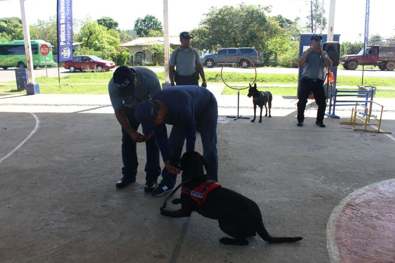 Niños y jóvenes junto a sus mascotas se trasladaron hasta el Complejo deportivo de Canto del Llano en Santiago, provincia de Veraguas, para participar en el Primer Convivio y Competencia inter GRUJUCAN 2018, organizado por la Unidad Canina (UCAN) de la Policía Nacional. El evento que se realizó el pasado sábado 20 de enero, cumplió uno de sus objetivos: jóvenes y niños a nivel nacional se conozcan y compartieran con los uniformados sus experiencias como miembros del Grupo Juvenil Canino (GRUJUCAN), que forma parte de los programas de Seguridad Ciudadana de la institución. Los grupos compitieron en las categorías obediencia básica con correa, salto y obstáculo, obediencia básica sin correa, binomio más completo y equipo campeón; llevándose la provincia de Veraguas el primer lugar, seguido de Chiriquí, Coclé y Panamá Oeste. El mayor y jefe de la UCAN de la Policía Nacional, Mario Chan Durán dijo que el convivio amplió la docencia sobre la importancia de integrarse en grupo y hacer aportes a la comunidad, reforzar vínculos y el respeto hacia las mascotas. También, se desarrollaron talleres en los que los entrenadores de la UCAN dictaron charlas sobre entrenamiento básico, alimentación, higiene, salud y otros cuidados de los canes; además se habló de valores, entre otros temas. Al final del evento, se premiaron a los ganadores con los trofeos y medallas correspondientes, obsequios para las mascotas como bolsas de alimentos y artículos para su cuidado, certificados y certificados de reconocimiento a los coordinadores de cada GRUJUCAN de cada provincia. |