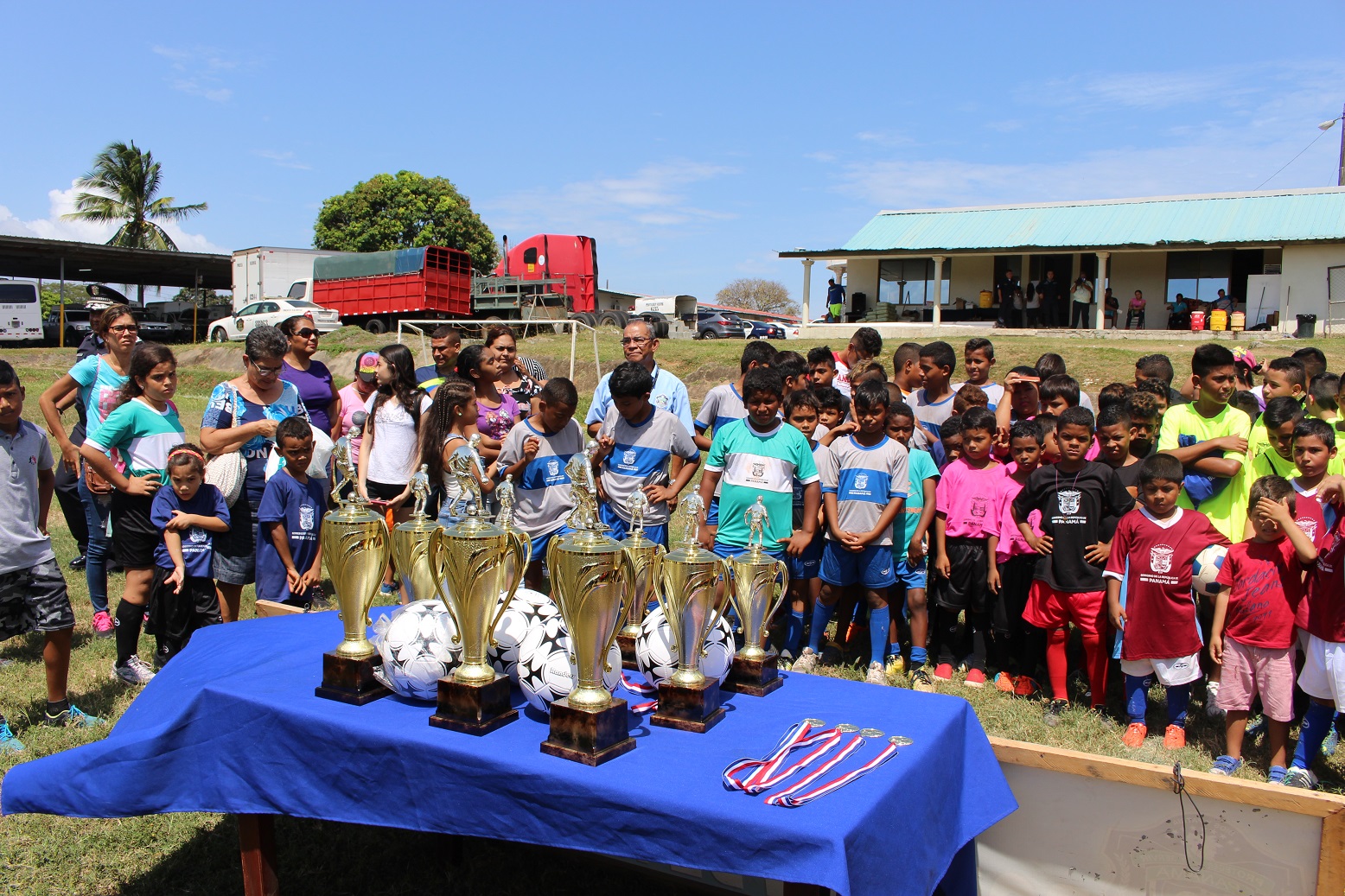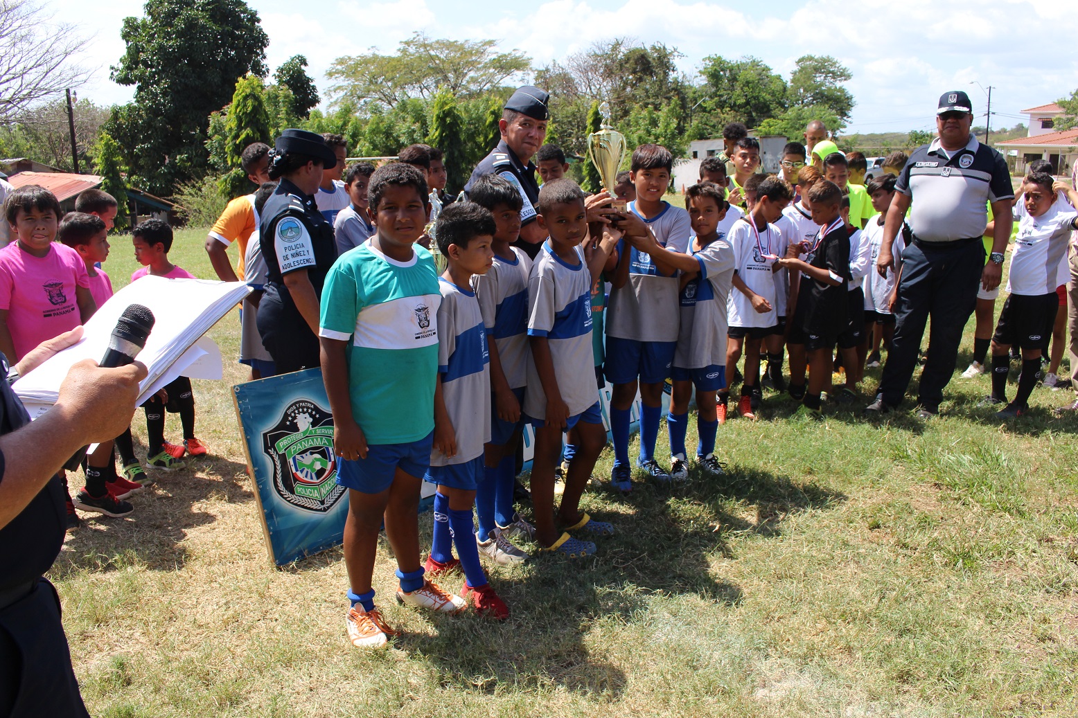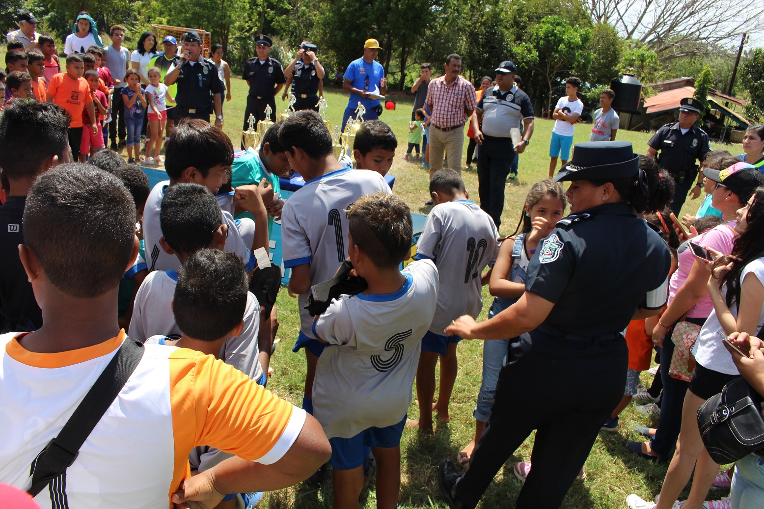 En la Cancha de Futbol de la Zona de Policía de Herrera, unidades policiales liderizada por el Comisionado Urraca de la Hoz; jefe de la 6ta. Zona Policial, celebraron la clausura de la Liga “Solo para Campeones”, donde participaron niños, niñas y adolescentes de diferentes edades. El Jefe policial se dirigió a los niños para felicitarlos por la conducta durante el desarrollo de todos los partidos, exhortarlos a seguir estudiando y los instó a poner en práctica las orientaciones impartidas por las unidades de la policía de la Niñez y Adolescencia durante el desarrollo de la liga como fueron las charlas sobre el uso correcto de las redes sociales, presión de grupo, prevención de droga y otros temas de seguridad. En el acto de premiación estuvo el Comisionado De La Hoz con su equipo de trabajo y funcionarios de Pandeportes, acompañando y entregando los trofeos, medallas y balones a los equipos y participantes más destacados en el torneo. Es preciso indicar que en la clausura hubo brindis y mucha diversión para todos los pequeños en sus vacaciones de verano. |
