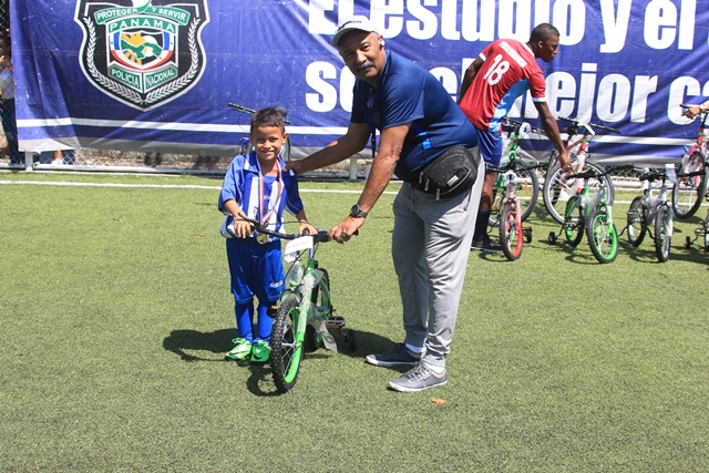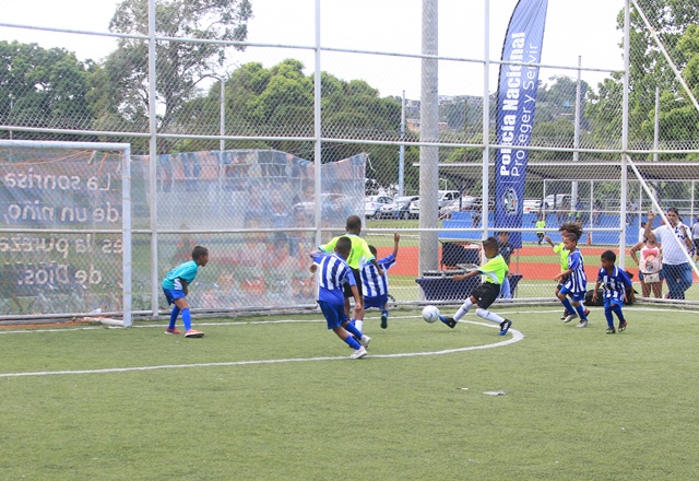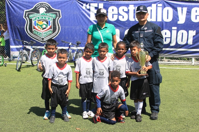 Niños de varias comunidades del distrito de San Miguelito y de la Sociedad Deportiva Atlético Nacional compartieron un día de mucho fútbol en el Complejo Deportivo ubicado en Santa Marta, Torrijos Carter, durante la clausura de la Copa Solo Para Campeones que organiza la Policía Nacional con el apoyo de la Secretaría Nacional para la Prevención de la Delincuencia Juvenil del Ministerio de la Presidencia. En este evento realizado este viernes 26 de enero, resultaron ganadores la S.D Atlético Nacional en las categorías sub 7 y sub 9, en tanto que el equipo de Cerro Cocobolo se coronó campeón en la sub 11 y el equipo de El Valle de Urracà en la sub 13, asegurándose su pase a los partidos regionales de dicha competencia deportiva que se realiza a nivel nacional. El comisionado y jefe de la Zona Policial de San Miguelito, Carlos Ortiz destacó que la actividad forma parte de los proyectos de acercamiento de la Policía Nacional en este distrito y en otras comunidades del país, implementando programas preventivos que producen cambios positivos en niños y jóvenes. "Además de jugar y pasarla bien, los niños y adolescentes que participan realizan actividades de trabajo social, aprenden valores, la responsabilidad y otras enseñanzas positivas que se transmiten con el deporte", dijo el Mayor Ricardo Fruto, de Seguridad Ciudadana de la Policía Nacional. En su primera versión, la Copa Solo para Campeones también busca convertirse en un espacio de oportunidades para formar a los futuros astros del fútbol nacional que demuestran en cada partido su alegría de ser parte de un equipo, en el que ponen todo su empeño. En tanto, el entrenador del equipo de la SD Atlético Nacional, Ricardo Harper, destacó que vendrán otros entrenamientos, ya que ahora tendrán que prepararse para los encuentros regionales para la gran final de esta copa. La Policía Nacional realiza de manera simultánea en todo el país, la Copa Solo para Campeones con la participación de más de 10 mil niños del programa de Convivencia Pacífica.