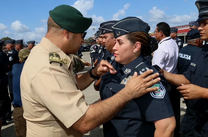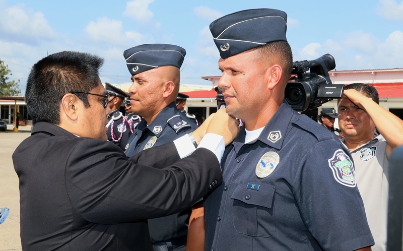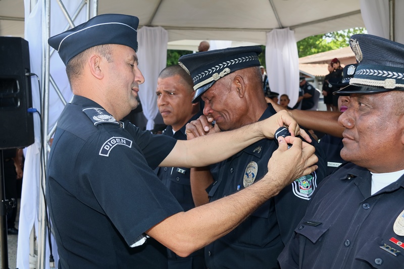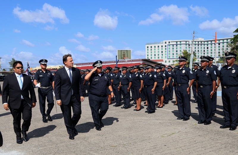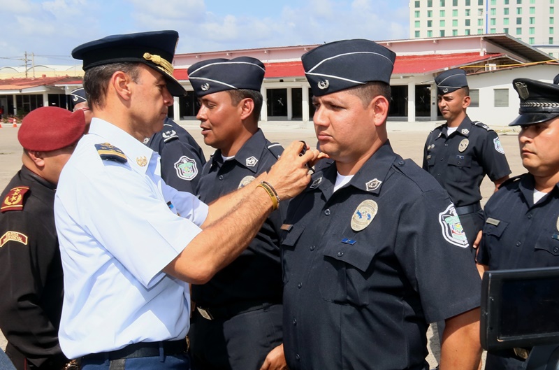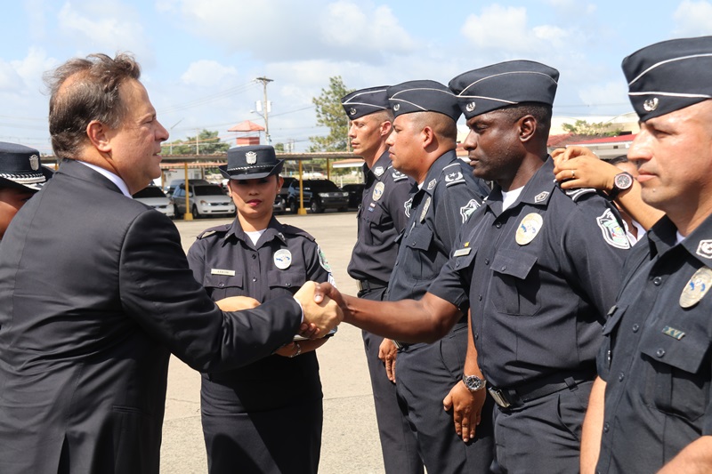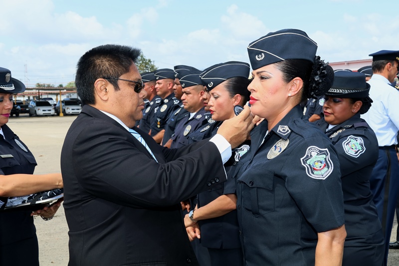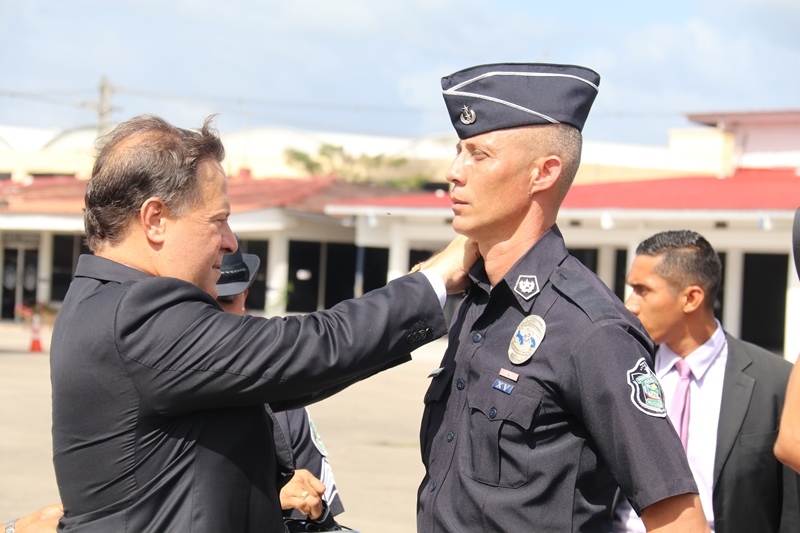 “Reafirmo el compromiso de mi administración de proveer a nuestros estamentos de seguridad los insumos, mecanismos de operatividad y formación para seguir trabajando por la seguridad de todos los panameños” dijo el Presidente de la República Juan Carlos Varela, en la ceremonia de ascensos de unos 3,885 uniformados de la Policía Nacional, evento realizado en la sede de la primera Institución de seguridad del país, ubicada en el corregimiento de Ancón. Se trata de hombres y mujeres quienes ascendieron al rango inmediato superior, debido a sus méritos, a la antigüedad y la eficiencia en el servicio policial, en un evento que contó también con la presencia del Ministro de Seguridad Pública, Alexis Bethancourt, Yau así como del Director General, Omar Ariel Pinzón Marín. “Me siento complacido al verlos avanzar en su carreras, mientras la Patria cumple con ustedes, y los estimula en un oficio que bien sabemos es sacrificado, pero que nos otorga grandes satisfacciones”, aseguró el director policial. Entre los ascendidos están; 1 comisionado, 6 subcomisionados, 40 mayores, 123 capitanes, 338 tenientes, 749 subtenientes, 566 sargentos 1ro, 446 sargentos 2do, además de 808 cabos 1ro, y 808 cabos 2do. Según la Ley Orgánica No. 18 de 3 de junio de 1997 que rige a la Policía Nacional de Panamá, los ascensos se confieren a los miembros de la Institución en servicio activo que cumplan los requisitos legales dentro del orden jerárquico, conforme a los principios de clasificación establecidas en el reglamento de evaluación y ascensos. Directores de los estamentos de seguridad del Estado, así como agregados policiales, navales, miembros del Directorio Policial, en invitados especiales estuvieron presentes en la ceremonia de ascenso. |