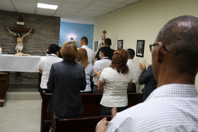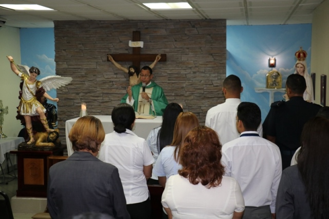 Miembros de la Policia Nacional participaron la mañana de este jueves 1 de febrero en una solemne eucaristía en la capilla San Miguel Arcángel de la institución ubicada en Ancón para agradecer al Todopoderoso todas los favores concedidos. El capellán Edgar Flores instó a las unidades seguir realizando buenas acciones que son del agrado de Dios, a su vez seguir firme en su fe y amarnos los unos a los otros . Al terminar los presentes participaron del saludo de la paz con el propósito de mantener la unión, cabe resaltar que esta misa fue trasmitida por la emisora Radio María 93.7 FM. |