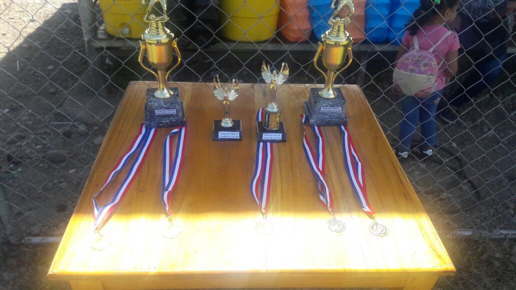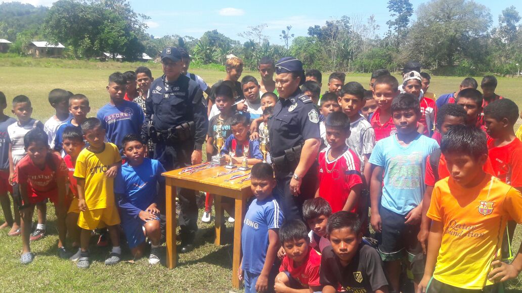 Niños de la comunidad de Punta Peña en el distrito de Chiriquí Grande, en la provincia de Bocas del Toro culminaron las actividades del programa Verano Feliz organizado por la Policía Nacional, con el objetivo de brindarles espacios recreativos en la época de vacaciones escolares. Acompañados por unidades policiales de servicio en la subestación de Chiriquí Grande, los pequeños participaron en diversas actividades culturales y deportivas. En la clausura del programa, los niños compartieron de una tarde deportiva, en la que recibieron trofeos y medallas, de igual manera disfrutaron de un brindis con golosinas y refrescos. |