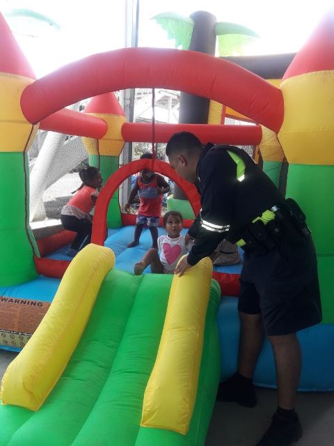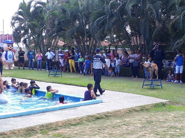 Familias del Corregimiento de Tocumen, culminaron las actividades del programa Verano Feliz, organizado por la Policía Nacional, miembros del Programa de Vecinos Vigilantes en conjunto con la Fundación Internacional María Luisa de Moreno. Dicha actividad estuvo dirigida principalmente a la familia, llevando sonrisas y alegría a los niños de nuestras comunidades en un ambiente cultural, de esparcimiento, diversión y seguridad para todos. En la clausura del programa, los asistentes compartieron de una tarde educativa donde recibieron charlas de valores y nutrición respectivamente, de igual manera disfrutaron de juegos inflables, piscina, presentación de canina de la Policía Nacional y de un gran brindis preparado. |
