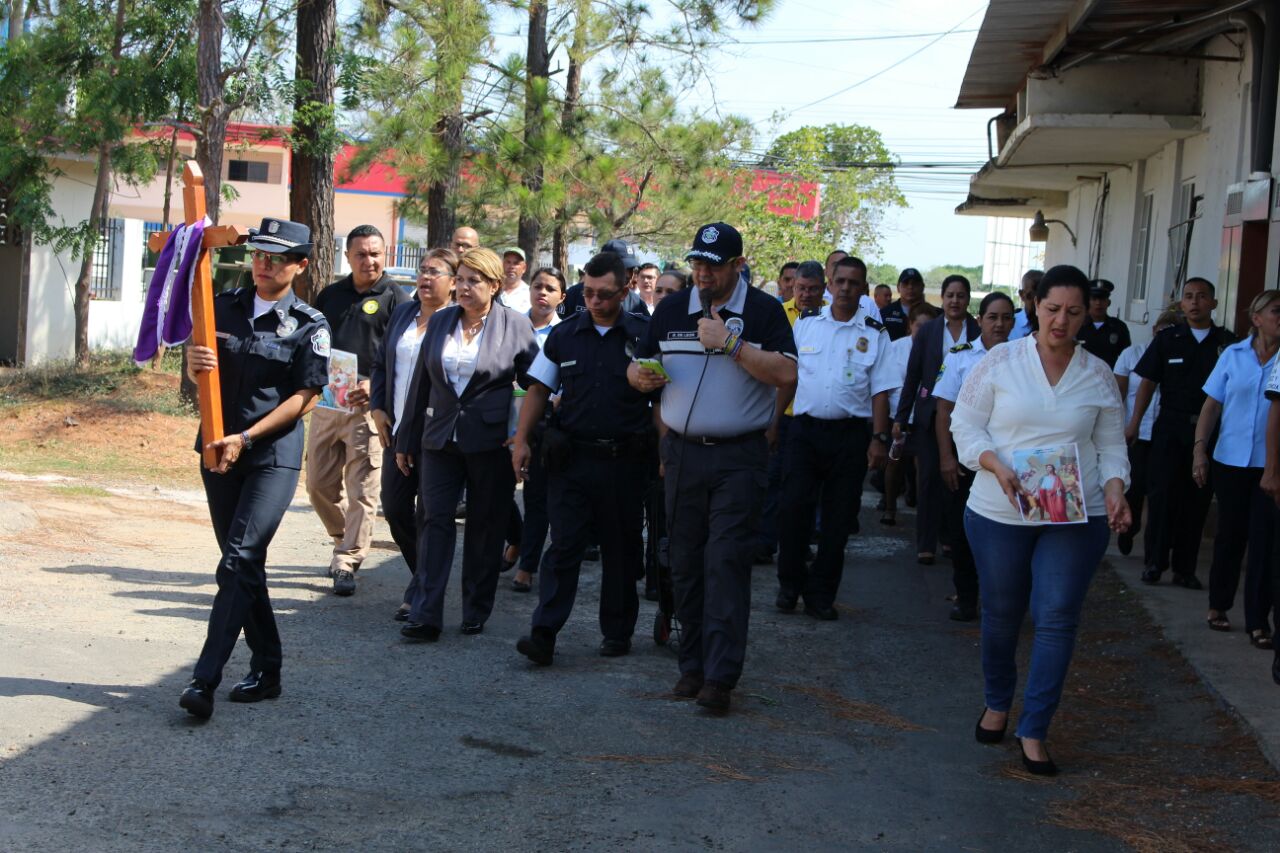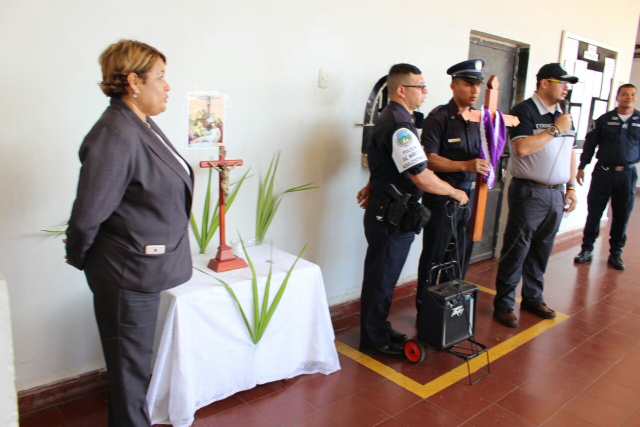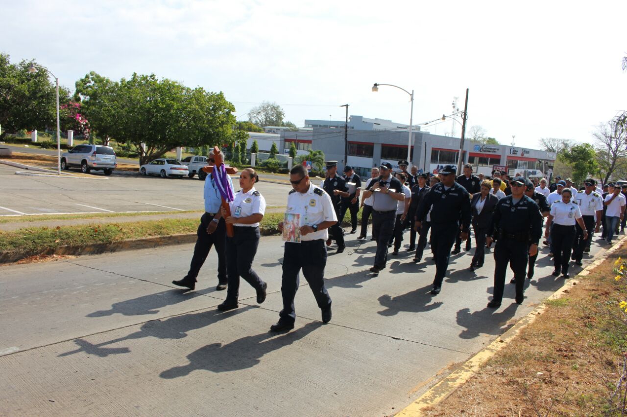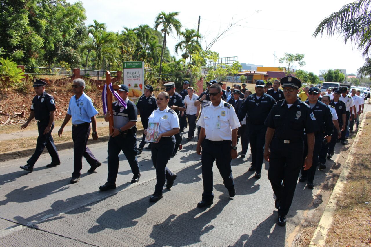 La Zona de Policía de Herrera realizó un Vía Crucis, con las respectivas estaciones; donde se contó con la participación del Servicio Nacional de Migración, Dirección Investigación Judicial, Dirección Nacional de Inteligencia Policial, Policía de Niñez y Adolescencia, grupo policiales y de la Zona de Policía de Herrera. La celebración religiosa fue dirigida por el presbítero Raúl De León, Capellán de la 6ta. Zona Policial; quien estuvo en el recorrido por las estaciones siendo acompañado por Comisionado Urraca De La Hoz, Jefe de la Zona de Policía de Herrera; su Ejecutivo subcomisionado Efraín Castillo y el equipo de trabajo Policía Nacional en Herrera. Este Vía Crucis es parte de las actividades de la pasión, muerte y resurrección de Jesucristo; como una antesala a la semana mayor, donde se refiere al recorrido por etapa de Jesucristo ante de su crucifixión. La Zona de Policía de Herrera a través de su guía espiritual el Padre De León exhorta a todas las miembros que laboran en la institución vivir momentos de reflexión; perdonando a sus semejantes y meditando de su actos. |