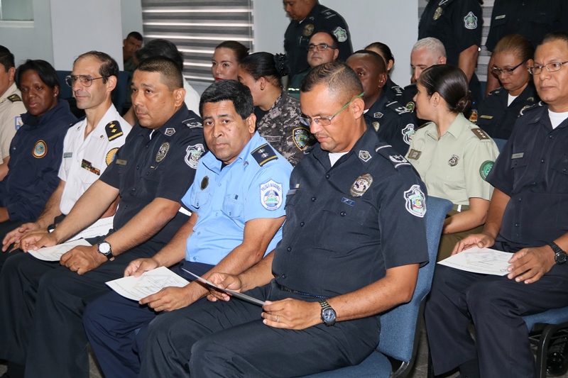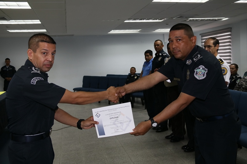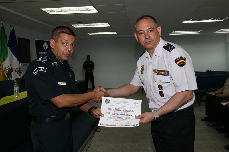 Con éxito y un ambiente de confraternidad, culminó el IV “CURSO DE FORMACIÓN EN PROCESOS DE SELECCIÓN PARA CUERPOS POLICIALES” en el auditorio de la Escuela de Oficiales de Policía, Dr. Justo Arosemena, de la Policía Nacional de Panamá. “Agradezco a la Policía Nacional de Panamá por haber hecho posible la realización de este curso, contar con la presencia de nueve países nos dice la importancia que tienen las sociedades modernas en la entrega de mejores resultados para la puesta en común de nuestros modelos formativos y la selección de personal” destacó Mariano Fernández Prieto, Inspector de la Policía de España y profesor del área de relaciones. Fueron veinte tres oficiales de países tales como: Salvador, Nicaragua, Guatemala, Ecuador, Argentina, Chile, Andorra, México y Panamá; recibieron su certificado de participación por haber culminado satisfactoriamente los nueves módulos dictados por la Policía Nacional de España, desde el 19 hasta el 23 de marzo de 2018. En el marco de la oferta formativa para este año 2018 de la escuela iberoamericana de policía-iberpol. Cabe resaltar, que en este curso se abarcaron módulos de suma importancia como: El Modelo Policial Español, El papel del psicólogo en los procesos de selección, la selección en la promoción del cuerpo nacional de policía; así como también Técnicas y criterios de selección. Al finalizar el acto protocolar, los oficiales de extranjeros manifestaron su agradecimiento a los docentes españoles y la Policía Nacional de Panamá por la hospitalidad recibida en Panamá. En la mesa principal de esta ceremonia de clausura estuvo el Comisionado y Director de Nacional de Docencia de la Policía Nacional, Jorge Luis Escobar, el Inspector de la Policía de España y profesor del área de relaciones, Mariano Fernández Prieto, la Inspectora Rosalinda Rodríguez González de la Policia de España; así como también, el capellán Arcia de la 3 Zona Policial de Colón. Para la Policía Nacional y los países que conforman IBERPOL, la selección de cuerpos policiales, constituye un pilar fundamental para un mejor servicio a la nación y el reforzamiento en la estructura policial. |