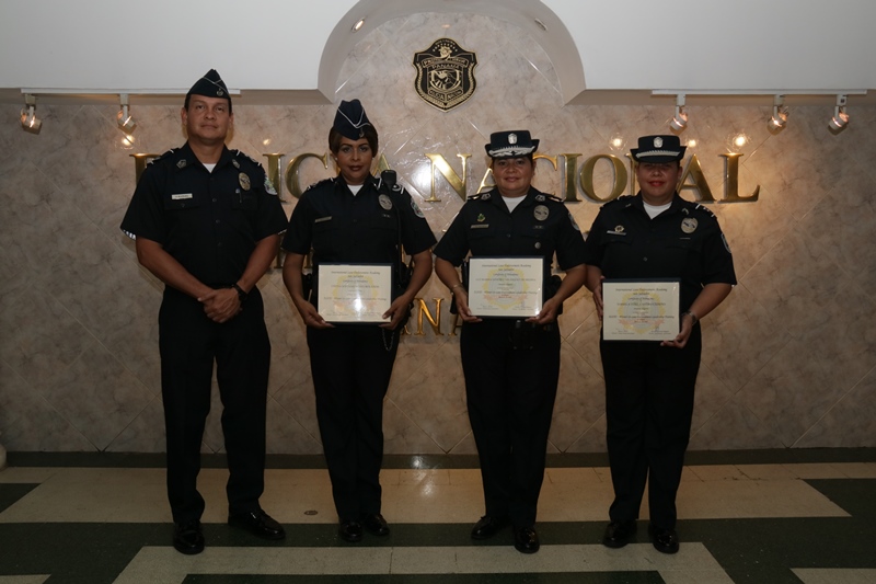 Tres damas de la Policia Nacional participaron en el curso “Mujeres Aplicadoras de justicia”, desarrollado en San Salvador, capital de la República de El Salvador dentro de la International Law Enforcement Academy del 19 al 23 de marzo del 2018. La delegación panameña estuvo conformada por la comisionada Cintia Meneses, la mayor Luz Marina Sánchez y la teniente Yariela Castro, quienes compartieron con 41 mujeres de la fuerza pública de países Latinoamérica y el Caribe. En esta capacitación se tocaron temas de interés para el género femenino como el concepto general de liderazgo, estilo conductual, a ser buenas motivadoras y la buena práctica en el trabajo que desempeñan. A su llegada las uniformadas fueron recibidas por el subcomisionado Jhonny Rangel quien las motivó a seguir dejando en alto el nombre de la institución y llenándose de conocimientos para ser multiplicadoras. |