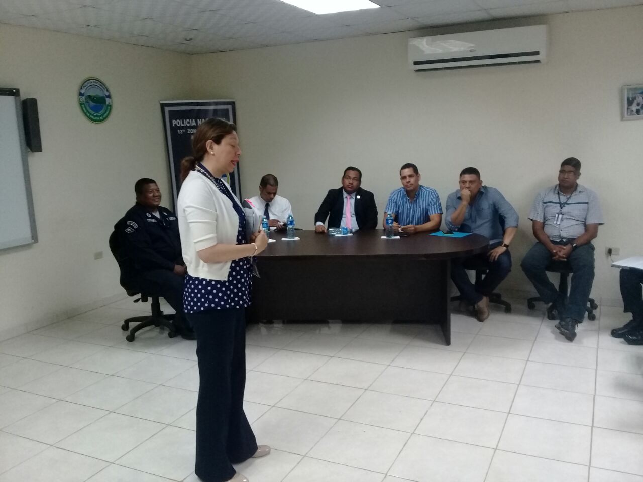Con la asistencia del Licenciado Aarón Pérez, secretario general del Ministerio de Seguridad Pública, la Treceava Zona Policial de Arraiján realizó éste viernes 6 de abril la reunión mensual con líderes comunitarios. Durante el encuentro, en la que participaron 60 líderes, se reiteró temas relacionado al Sistema Penal Acusatorio donde la Licenciada Dayra Botello, Fiscal Superior encargada de Panamá Oeste aclaró algunas dudas de los presentes. También participó en ésta reunión el Vicegobernador de la Provincia de Panamá Oeste, Licenciado Eric Villarreal. En tanto, el Comisionado Luis Navarro agradeció a los líderes comunitarios la asistencia a ésta actividad y a la vez manifestó que gracias a la participación ciudadana se ha logrado disminuir la incidencia de delitos en las áreas residenciales. |