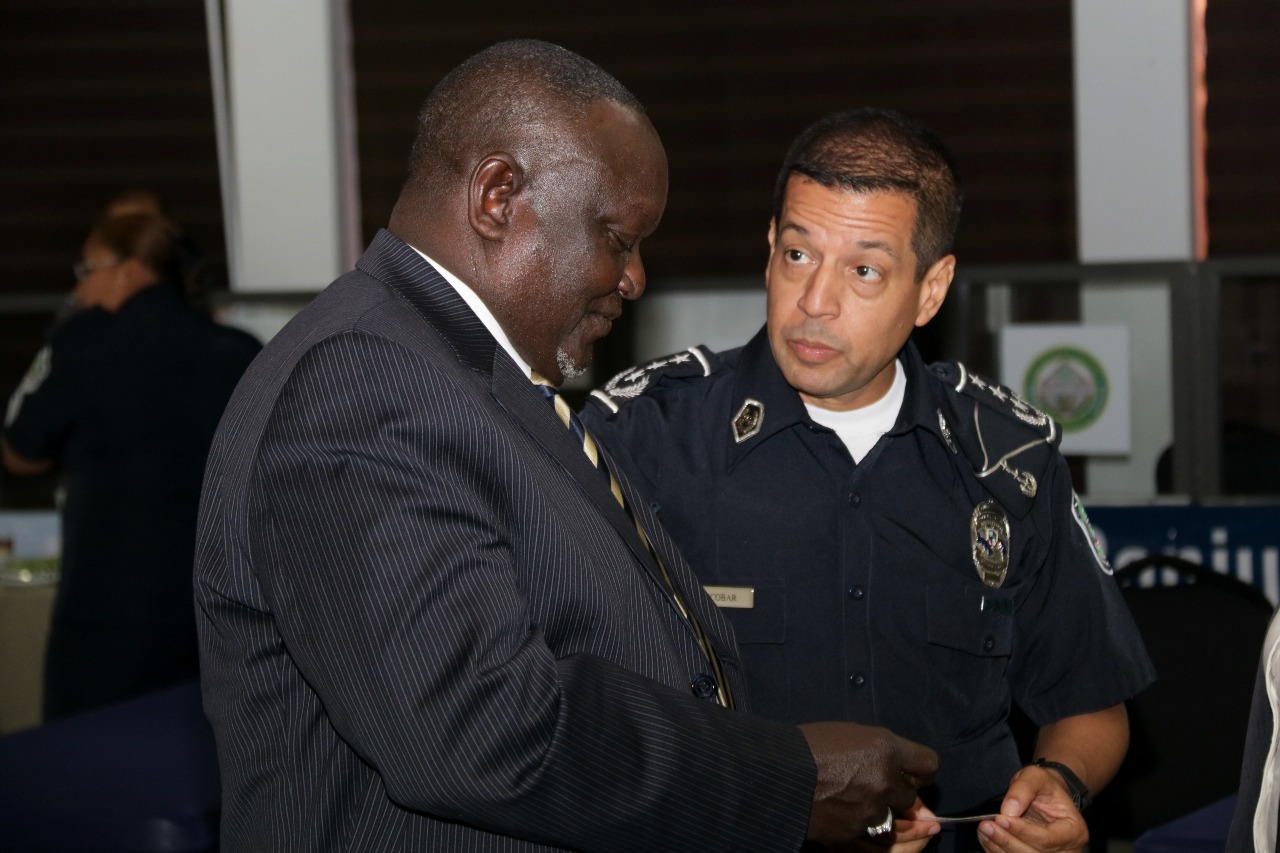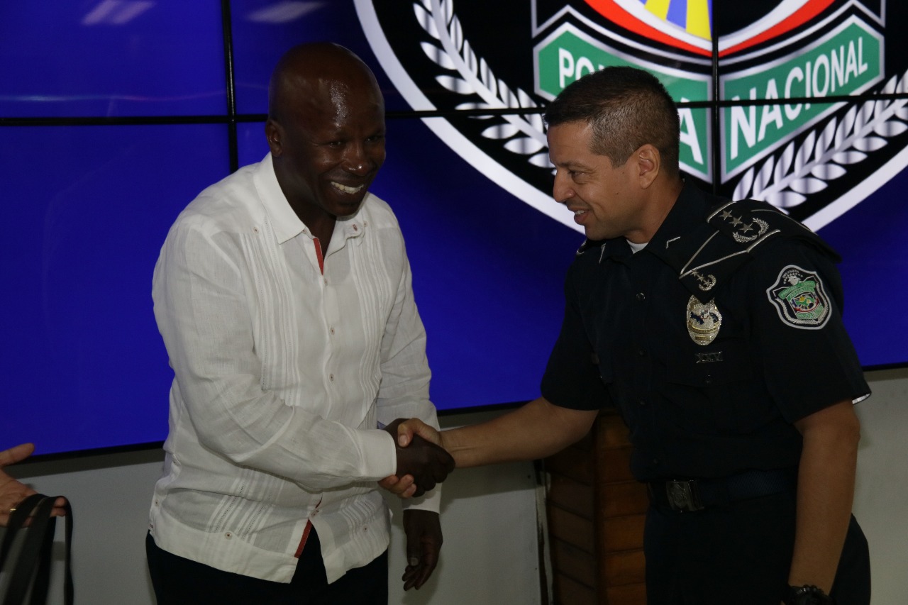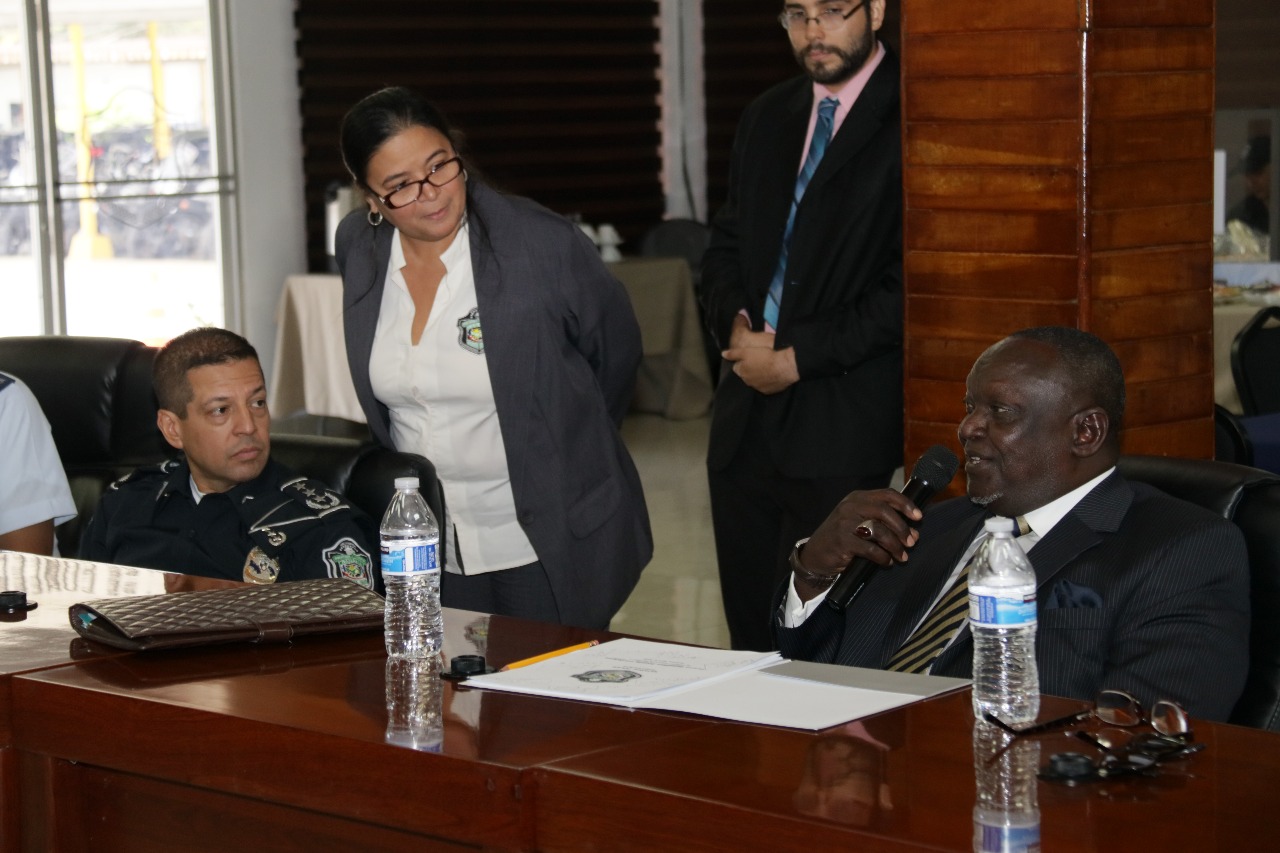 La Policía Nacional de Panamá través de la Dirección Nacional de Docencia, recibió este lunes 9 de abril a 14 estudiantes del Colegio de Defensa de Kenya clase 20, en la sede de la Institución. Los visitantes buscan tener una visión más amplia del acontecer de otras naciones, enfocados de igual manera en el aspecto de seguridad ciudadana, historia, cultura, composición política, entre otros temas sociales. El comisionado Jorge Luis Escobar, Director Nacional de Docencia, resaltó la labor de los hombres y mujeres de uniforme y la capacidad adquirida en atender los riesgos locales que inciden en la seguridad de los panameños, trabajando en todo momento con políticas estables y debidamente consensuadas con la sociedad y los Órganos del Estado. El diplomático keniano, Anthony Muchiri, en nombre de los estudiantes agradeció a la institución policial la hospitalidad brindada y permitirles conocer algunas de las estrategias de seguridad para combatir el crimen organizado. La delegación keniana estará de visita por Argentina, Singapur Estados Unidos e Inglaterra. |