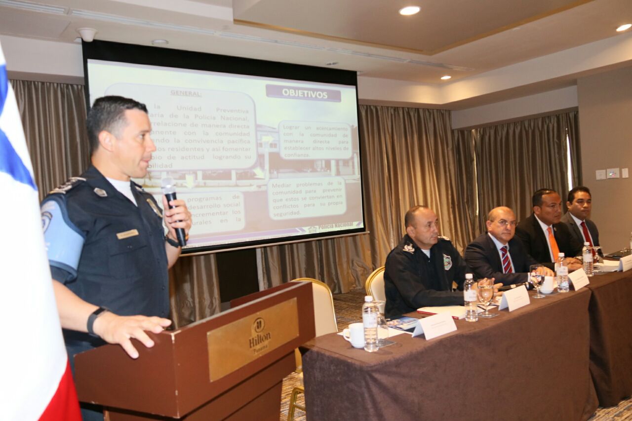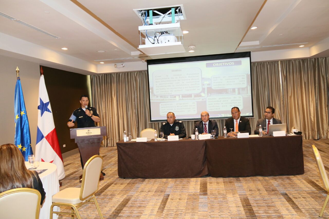 La labor e importancia de la Unidad Preventiva Comunitaria (UPC) de la Policía Nacional en el marco de la estrategia nacional de Seguridad Ciudadana, fue el tema de un desayuno informativo ofrecido por la Unión Europea (UE) a representantes de los diferentes medios de comunicación Social, en un acto desarrollado en un hotel de la localidad, este jueves 12 de abril de 2018. “Hay una reducción de los delitos de mayor impacto social y aumento de la credibilidad que siente la comunidad por el trabajo que adelanta la Policía, estos son dos de los principales logros de nuestra UPC” destacó el Director General (encargado) de la Policía Nacional, Alonso Vega Pino, durante este desayuno informativo. El jefe policial reiteró que la función de la UPC es interrelacionarse de manera directa y permanente con la comunidad, manteniendo la convivencia pacífica de todos los residentes y así fomentar un cambio de actitud logrando su sostenibilidad. Por su parte, el jefe de la UPC, Raymundo Barroso destacó que en seis años de haber sido creada esta unidad se han logrado los objetivos propuestos por la Policía Nacional que es llegar a estas comunidades a través de programas preventivos y de desarrollo humano. Informó que precisamente, por lo efectivo de la unidad, ya hay oficinas en Curundú, El Chorrillo, Samaria, Chiriquí y Colón, con unas 860 unidades debidamente capacitadas. “Tenemos grandes logros como lo son las juntas vecinales que brindan información útil para actuaciones operacionales y la conformación de alianzas estratégicas con diversas instituciones a fin de elaborar acciones en pro del mejoramiento de los barrios” destacó. En este actividad estuvo presente Giovanni Di Girolamo, encargado de Negocios de la UE, oficina que ha realizado valiosos aportes a la Policía Nacional, específicamente en materia de construcción de infraestructura y capacitación a personal. También participaron en este conversatorio Hernán Morales quien es director ejecutivo de la Oficina de Seguridad Integral (OSEGI) y Luis Zegarro director de la Oficina de Seguridad Ciudadana del Ministerio de Seguridad Pública.