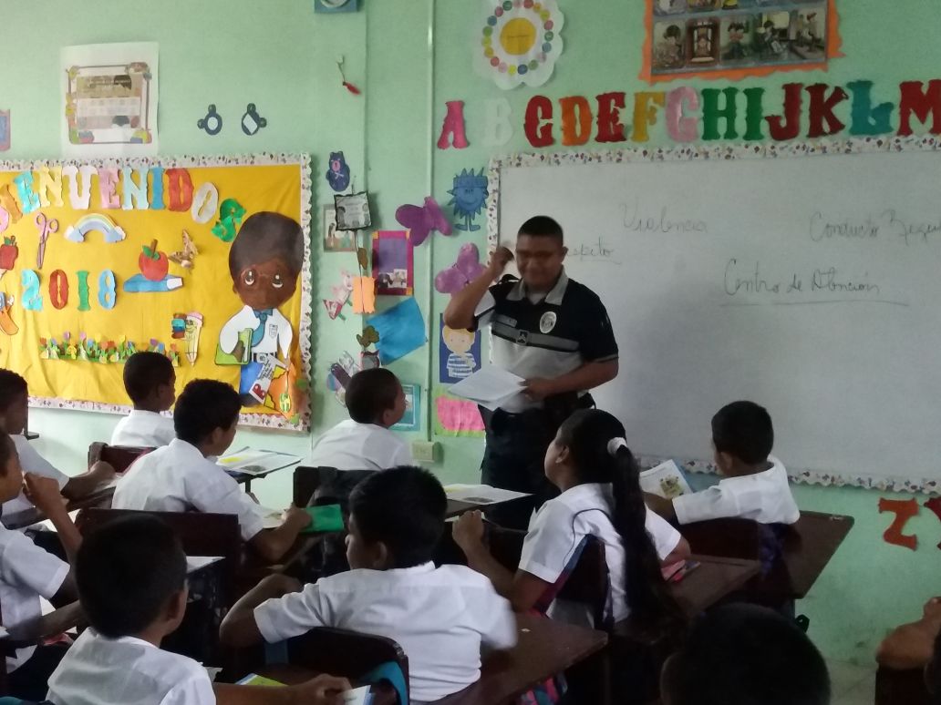 Unidades de servicio en la Policía de Niñez y Adolescencia de Bocas del Toro, llevaron hasta el Centro Básico General Republica de Nicaragua en Isla Coloón, lecciones del programa Educación y Entrenamiento Contra las Pandillas (G.R.E.A.T). Un total de 33 estudiantes de nivel de 6to grado en la jornada matutina fueron capacitados con este programa que dirige la Policía de Niñez y Adolescencia. Esta capacitación tiene como objetivo de reforzar los mecanismos de defensa en cada uno de estos estudiantes. |