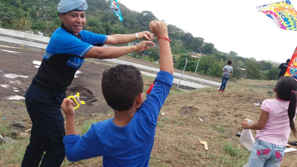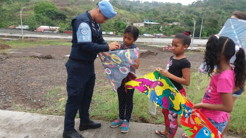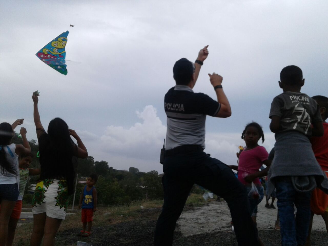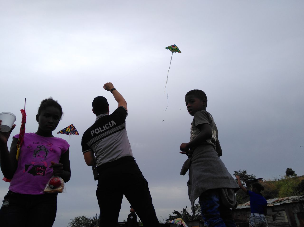 Las unidades de la Policía Nacional de servicio en la Unidad Preventiva Comunitaria (UPC Samaria) aprovecharon este sábado, para llevar a cabo su tradicional actividad denominada “Cometas al Cielo por la Paz” con la asistencia aproximada de 150 niños de Altos de la Torre. En esta hermosa actividad participaron pequeños y grandes, quienes apreciaron la exhibición cometas de diferentes colores y tamaños, algunas incluso creadas por ellos mismos. Raymundo Barroso, jefe de la UPC Samaria destacó la importancia de actividades recreativas como estas, que busca trabajar con los niños de esta área del país y así ocuparlos en acciones que los alejen de la delincuencia. “Nos sentimos felices por el resultado de esta actividad, que no solo reunió a los pequeños, sino a sus padres, interesados en que sus hijos ocupen su tiempo libre en cosas constructivas” dijo Barroso. Con esta actividad que por años se lleva a cabo en sectores donde la Unidad Preventiva Comunitaria tiene presencia, se busca hacer que el niño disfrute de actividades al aire libre, rodeado de un ambiente de paz y tranquilidad . “Los niños tienen una imaginación enorme y que debemos aprovechar al máximo” destacó el Comisionado Barroso. |