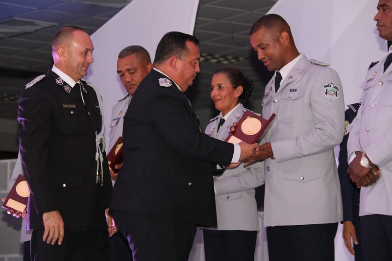 “Me siento muy emocionado por la alta distinción que hoy me han dado, aunque de igual manera puedo decirles que todos los policías somos ejemplares, porque con nuestro trabajo sembramos paz y armonía en el país”, destacó el teniente Octavio Moreno al ser elegido Policía Ejemplar 2018. De igual manera, en nombre de todos los participantes, agradeció al Director General de la Policía Nacional, Omar Ariel Pinzón Marín y a la oficialidad por la celebración de tan importante actividad. El segundo y tercer lugar lo ocuparon el subteniente Alexis Samaniego de la Dirección Nacional de Inteligencia Policial (DNIP) y el Teniente René Holmes del Servicio de Turismo, respectivamente. En tanto, el Director General Omar Pinzón, afirmó que no puede ser Policía Ejemplar aquel que no procura igualmente ser ejemplar en su hogar y en el espacio social en que le corresponde desenvolverse. Agregó que de igual manera se enaltece la abnegada labor que realizan los hombres y mujeres de uniforme en beneficio de nacionales y extranjeros que habitan en el país. El Jefe Policial también felicitó a todos los participantes en este concurso que realza la labor abnegada de los uniformados. La gala de Policía Ejemplar donde por cuarto año consecutivo se le otorga un automóvil al ganador, forma parte de las actividades desarrolladas por la celebración de los 81 aniversarios del “Día del Policía”, fecha instituida en la Ley 28 del 28 de enero 1937. La escogencia del “Policía Ejemplar 2018” estuvo a cargo de un jurado conformado por destacadas personalidades con un amplio conocimiento en seguridad pública y doctrina policial. |