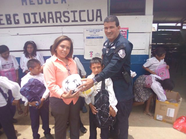 Unidades de la Policía Nacional de servicio en el puesto policial de Bayano, realizan labor social en la escuela La Gavilana de la Comarca de Mudugandí. Los niños recibieron mochilas con útiles escolares, así como también, implementos deportivos y materiales didácticos, que contribuirán a un mejor desempeño académico. El mayor Carlos Chávez, encargado del puesto policial, manifestó el gran agrado que les da realizar estas labores sociales que seguirán llegando a todas estas personas de escasos recursos, donde la necesidad sea palpable y afirmo que "Proteger y Servir" más que un lema, es un compromiso.