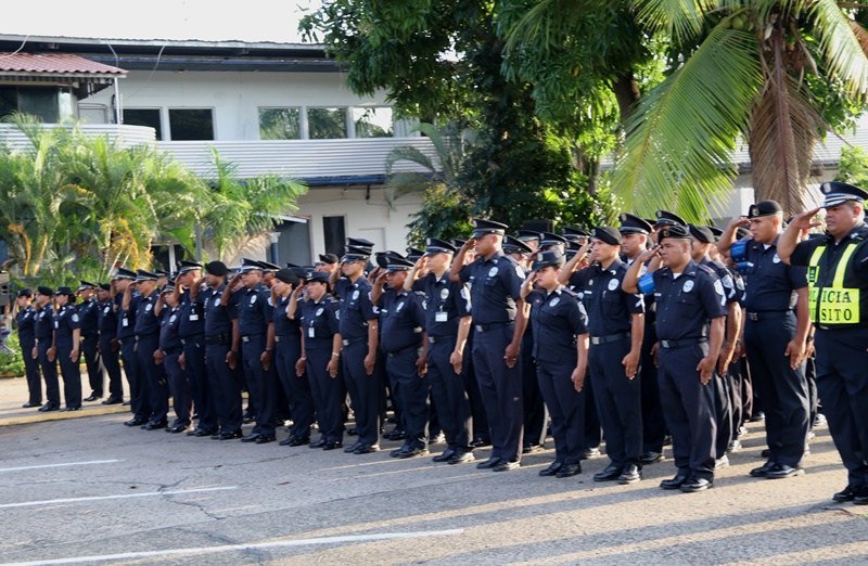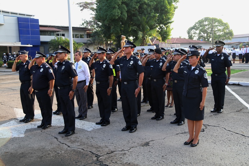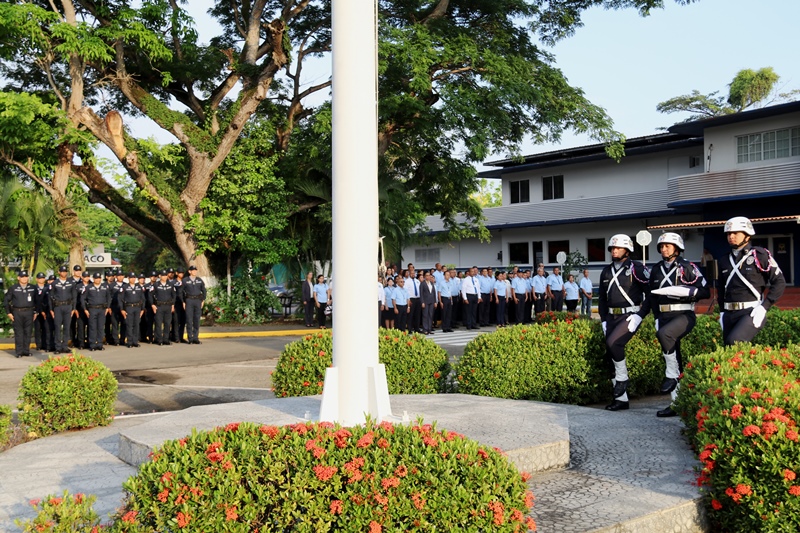 Durante el acto cívico realizado este lunes 7 de mayo de 2018, en la sede policial de Ancón, se rindió honores y respeto al Pabellón Nacional, además se le recordó a los caídos en el cumplimiento del deber. Durante la ceremonia, el Director General de la Policía Nacional, Omar Ariel Pinzón Marín, elicitó a los presentes por los logros obtenidos y los instó a continuar trabajando en beneficio de la comunidad, aportando su mayor esfuerzo para construir un país. "Rindamos honor y respeto a este uniforme que lleva la bandera de Panamá y hay que tratarlo con disciplina" destacó. Aseguró que se mantendrá la presencia en las calles a nivel nacional y se reforzarán las estrategias de seguridad. A esta acto civico del mes de mayo asistieron miembros del Directorio, oficiales, tropas, personal juramentado, no juramentado, de igual forma reservistas de la Policía Nacional. |