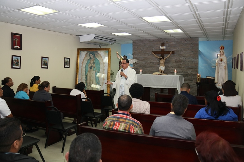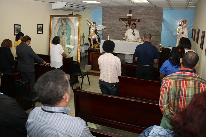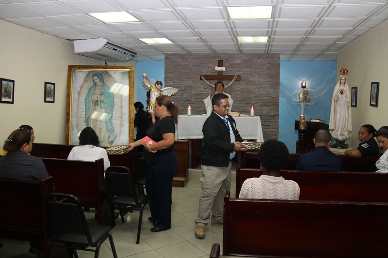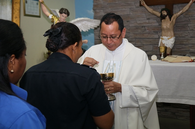 Personal juramentado y no juramentado de la Policia Nacional se hicieron presentes en la eucaristía celebrada en la capilla San Miguel Arcángel dentro de la institución ubicada en Ancón. En esta misa presidida por el capellán Edgar Flores, se dio gracias a Dios por todas las bendiciones brindadas en el caminar de los miembros de la institución. "En los tiempos difíciles no nos alejemos de Dios, vivamos aferrados a la fe, convivamos con amor, paz y armonía entre nuestros semejantes" destaco el capellán de la Institución de seguridad. En esta ocasión también se pidió por la salud y bienestar del personal de la Policía Nacional. |