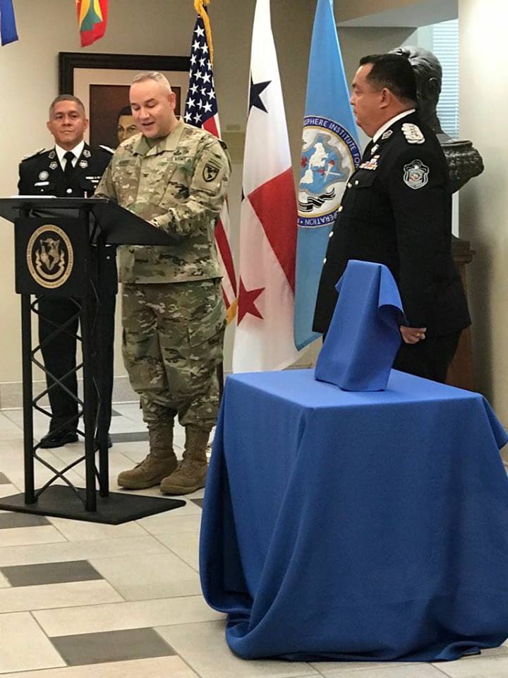 Satisfactoriamente, dos oficiales de la Policía Nacional culminaron el curso Comando y Estado Mayor, en el Instituto del Hemisferio Occidental para la Cooperación en Seguridad (WHINSEC), en Columbus (Georgia), Estados Unidos. El subcomisionado Leslie Howard y el mayor Santiago Villamonte, se capacitaron en varios aspectos, entre estos, organizar, planificar y estrategias sobre eventos masivos, orientados como parte de los esfuerzos de la Institución en los preparativos previos a la Jornada Mundial de la Juventud, a realizarse en Panamá el próximo año. Además, adquirieron otros cursos como: contención de destrucción de armas masivas, operaciones de paz y proceso de tomas de decisiones. Este seminario tuvo una duración de un año, con el propósito de poner en práctica todo lo aprendido. Ya en la sede de la Policía Nacional, los oficiales fueron recibidos por el secretario general, el subcomisionado Jhony Rangel. En la ceremonia de gradución estuvo como invitado especial, el Director General de la Policía Nacional, Omar Ariel Pinzón, quien también es egresado de WHINSEC. |