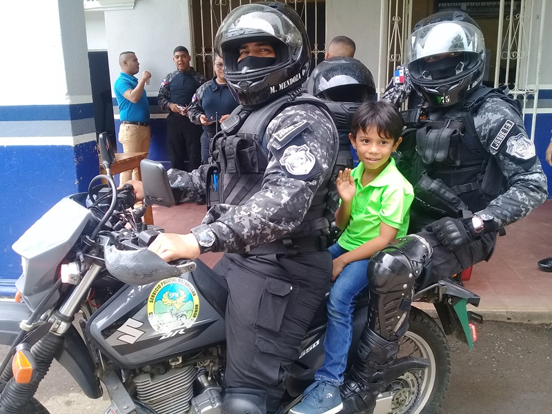 Las unidades del Servicio Policial Motorizado “LINCES” de la 4ta. Zona policial de Chiriquí, recibieron la grata visita de niños y educadores del CAIPI “Chispita del Saber de la urbanización El Terronal, distrito de David. Los mismos fueron recibidos con mucha alegría de parte de los uniformados, donde se les brindó información de las actividades que se desarrollan en esta institución policial. Se habló del museo histórico, pudieron apreciar un corto metraje “Los Guarapero de Dolega”, actuaron jóvenes de la UNACHI, personal de Culturama y Policía Nacional. Se recrea acontecimientos históricos de la provincia de Chiriquí. También se realizó pinta caritas, paseos en moto y obsequió un brindis a los niños y niñas de este centro infantil. |