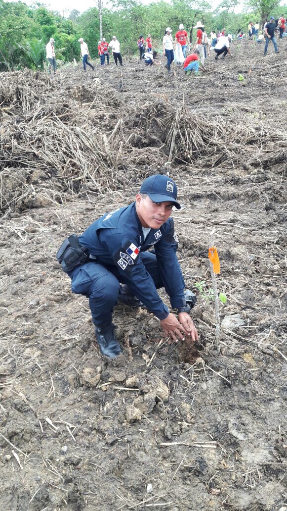 En el marco del Día Nacional de la Reforestación que se conmemoró este sábado 2 de junio, la Policía Nacional de Panamá a través de la Dirección de Policía Ecológica, participó de manera activa y coordinada con el Ministerio de Ambiente en apoyo a la Presidencia de la República en la Alianza por un Millón de Hectáreas. De acuerdo con la jefa de la Dirección de Policía Ecológica, Subcomisionada Sheyla Cedeño, hubo 42 puntos de reforestación a nivel nacional que incluye fincas públicas y privadas, además de cuencas de ríos, quebradas y áreas protegidas donde se realiza la siembra de árboles y plantones. Esta actividad es desarrollada por miembros de voluntariados de instituciones públicas y privadas incluyendo los estamentos de seguridad. |