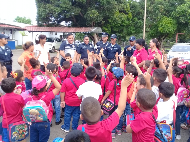 Estudiantes de Pre-escolar del Centro Educativo Básico General José Gabriel Duque, visitaron las instalaciones de la sede de la 5ta Zona Policial de Panamá Este. La visita se da como parte del programa de Gira Educativa, que todos los años realiza el personal docente de este prestigioso plantel educativo, en donde escogen nuestra sede policial, para que estos niños, conozcan el trabajo que llevan adelante las unidades policiales de servicio en Chepo. Estos niños, entre las edades de 4 y 5 años, hicieron realidad sus sueños, cuando entre risas y alegrías, accedieron a cada una de las oficinas administrativas, así como también, participaron con las unidades "Linces", motorizados de la Dirección Nacional de Operaciones del Transito, que los llenó de grandes motivos. Al final, en medio de un pequeño brindis se les proyectaron algunos de los lugares más importantes del distrito de Chepo, al que la Policía brinda seguridad, como también, se les hizo de conocimiento de todo lo que implica se policía. |