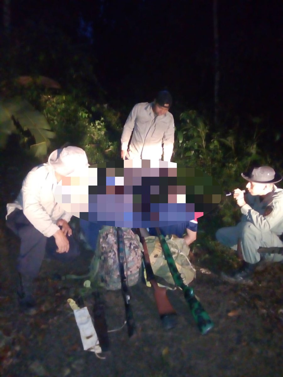 Unidades de la Policía Nacional de servicio en la Dirección Nacional de Policía Ecológica (DNPE) capturaron a dos personas, quienes supuestamente practicaban la cacería ilegal, en el distrito de Arraiján. Fueron las unidades de la DNPE, asignadas a Los Polígonos de Tiro de Arraiján, quienes aprehendieron a estos ciudadanos, los cuales mantenían dos armas de fuego, una escopeta calibres 28 y un rifle calibre 22. Una de estas personas al notar presencia de los uniformados, intentó darse a la fuga, abandonando el arma que portaba. Minutos después fue capturado, manteniendo en su poder: 60 municiones cal.22, 7 municiones cal.28 y 4 municiones cal. 410. Estas personas fueron puestas a órdenes de las autoridades correspondientes, pues se presume que se disponían ingresar al área protegida para realizar caza ilegal. La Policía Nacional agradece a la ciudadanía continuar denunciando los hechos delictivos llamando a la línea de emergencia policial 104 o a través de la cuenta de Twitter @protegeryservir |