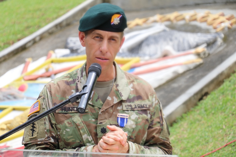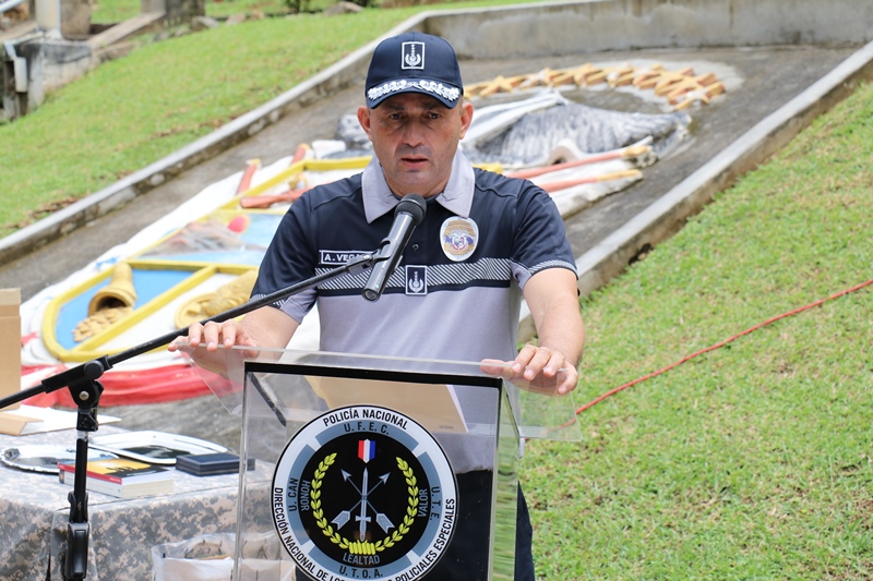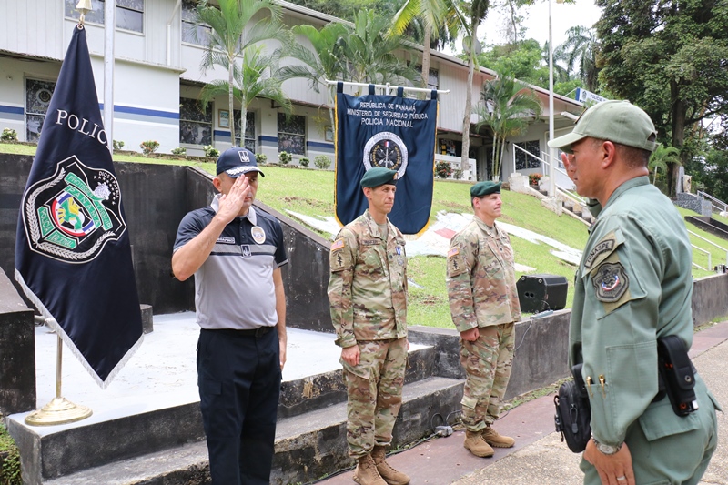 El Director General de la Policía Nacional, Alonso Vega Pino impuso la medalla de la Policía Nacional al teniente coronel Marcos Hunter de las Fuerzas Especiales de la Embajada de los Estados Unidos, como reconocimiento a su profesionalismo, responsabilidad y compromiso en el ejercicio de sus funciones en calidad de instructor durante su estadía en Panamá, en un acto que se llevó a cabo en la sede de la Unidad de Fuerzas Especiales y Contraterrorismo (UFEC). “Agradezco en nombre del país al teniente coronel Marcos Hunter, por contribuir en el proceso de enseñanza de las unidades policiales durante un periodo en el que se preparan para Fuerzas Comando 2018” destacó el jefe de la primera institución de seguridad de Panamá. De igual manera, aprovechó la oportunidad para darle la bienvenida al Tte. Coronel Jhon Reese de la Embajada de los Estados Unidos quien se une a esta unidad policial para continuar con los lineamientos de docencia y capacitación a las unidades de la Policía Nacional. En tanto, el Tte. Coronel Marcos Hunter entregó una serie de libros con material técnico sobre su trabajo y el otro sobre motivación personal. “La fuerza policial necesita hombres que tengan esa capacidad de leer, meditar y poner en práctica ambas partes” destacó el Tte. Hunter. Igualmente, el comisionado Javier Rodríguez, director de la Dirección Nacional de los Servicios Especiales Policiales (DINASPE), agradeció todo el apoyo brindado y entregó un presente al oficial estadounidense.