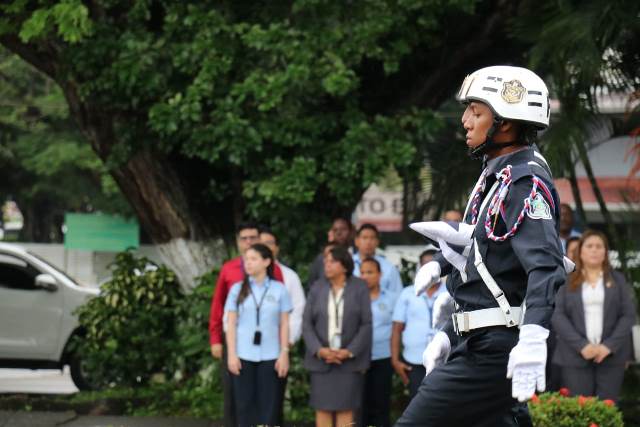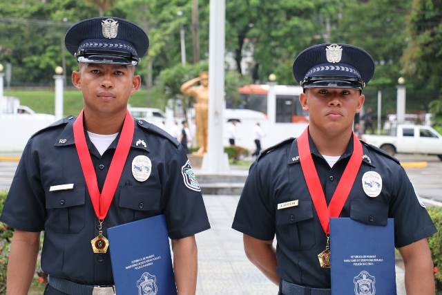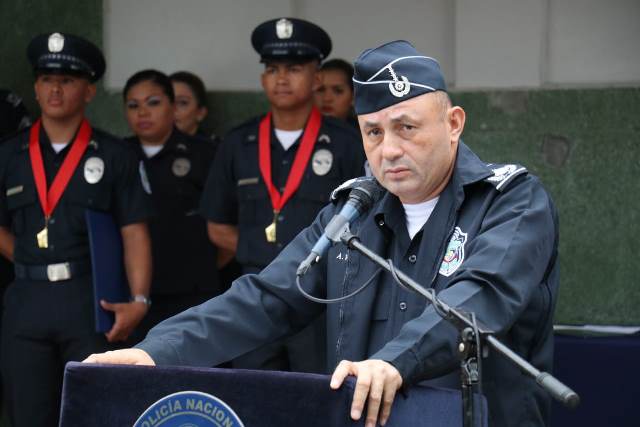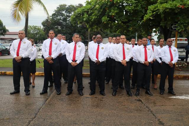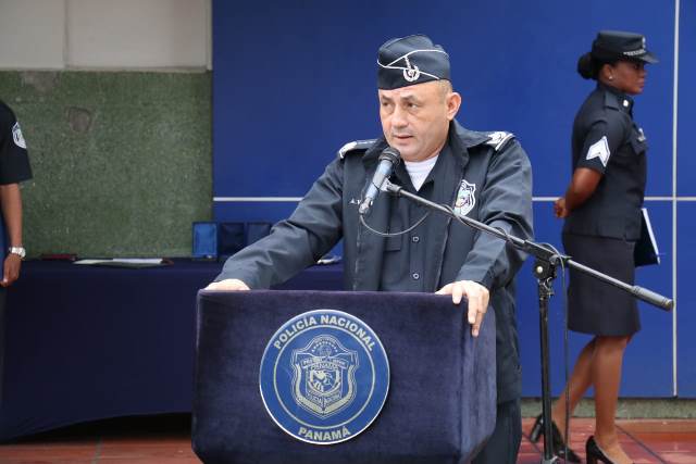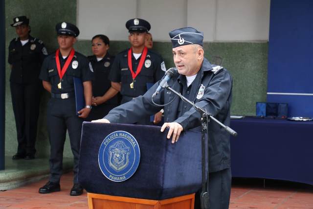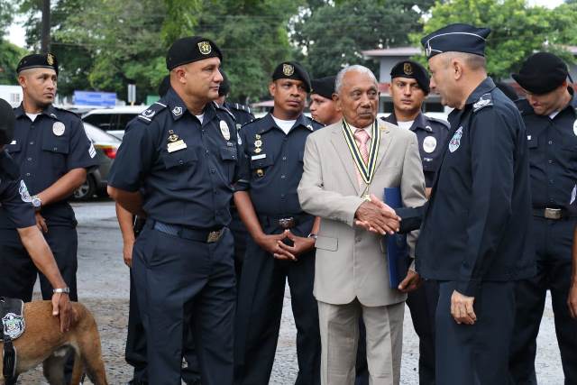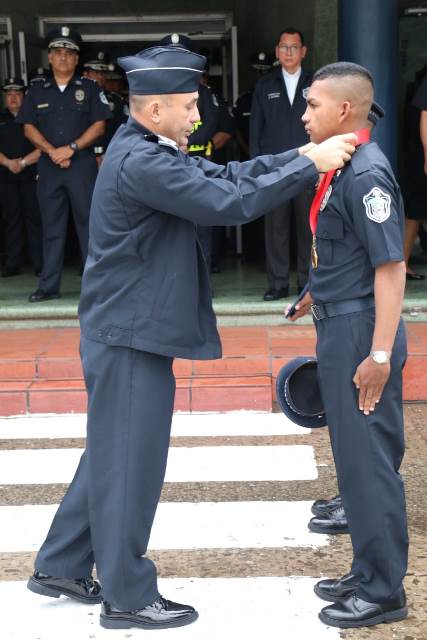 Panamá, lunes 11 de junio de 2018. “Empezamos la semana agradeciendo a Dios por la vida, la salud y también lamentando la perdida de tres de nuestras unidades el fin de semana, en forma trágica”, con este mensaje el Director General de la Policía Nacional, Alonso vega Pino dio inicio al acto cívico correspondiente al lunes 11 de junio de 2018. El Director Policial agradeció a las unidades y miembros no juramentados, el trabajo comprometido, leal y honrado que demuestran cada día y noche para “proteger y servir” a los panameños. En este acto, también se condecoró al Subteniente (retirado), fundador y primer jefe de la Unidad Canina (UCAN), Argelis Vega de la medalla “Dirección Nacional de los Servicios Policiales Especiales”. En tanto, los agentes Alexander Aguilar y Faustino Mojica, de servicio en la Dirección Nacional de Operaciones, ambos recibieron la condecoración honorífica Medalla al Servicio Distinguido. A estas unidades se le otorgó estas medallas por sus destacadas y meritorias intervenciones, donde se dejó ver el gran sentido de responsabilidad, desempeño, tolerancia y respeto en bien de la seguridad ciudadana. El jefe policial destacó que este reconocimiento es a la capacidad profesional de sus policías y aplomo, además del coraje para resolver una situación de violencia. Un grupo de siete perros pertenecientes a la UCAN, acompañados por sus respectivos instructores, estuvieron el acto cívico y condecoraciones en la Sede de Ancón. |