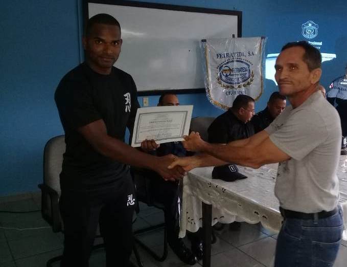 Unidades del departamento de Seguridad de la 4ta. Zona Policial de Chiriquí, realizaron una docencia con el tema: "Defensa Personal, Medidas de Seguridad y Prevención de Procedimiento de Aprehensión Ciudadana", al personal de seguridad y vigilancia de la Terminal de David "FETRATEDA". La docencia se dio en el salón de reuniones de la Terminal de Transporte de David, donde se contó con la presencia de 16 funcionarios del Departamento de Seguridad y los vigilantes del lugar. El Subteniente Eduardo Muñoz, el Cabo 1ro. Joao Harrison y la Cabo 1ro. Rosa Espinoza, fueron los instructores que dieron esta capacitación, los temas que se dieron están: Los Principios Básicos de Actuación, Protección de los derechos humanos y Técnicas de defensa personal basada en el arte marcial Ninpo para la reducción física de movimiento. El Señor Juan Pablo Carrera Ortega, encargado de la Seguridad y Vigilancia de dicha empresa, agradeció a las unidades policiales por el apoyo brindado en esta docencia y a su personal de seguridad le manifestó que esta instrucción será de mucho beneficio a nivel personal y profesional, ya que los ayudará a fortalecer su trabajo con eficiencia y eficaz. En el acto de entrega de certificados de reconocimiento por haber culminado satisfactoriamente este curso preventivo, estuvo presente el Teniente Lucinio Miranda, encargado del Departamento de Seguridad Ciudadana en la provincia, en representación del Comisionado Eric Amaya, Jefe de esta Zona Policial y el Licenciado Alex Gallardo, Gerente de la Terminal de David.