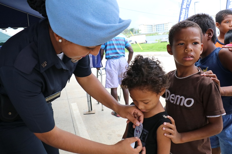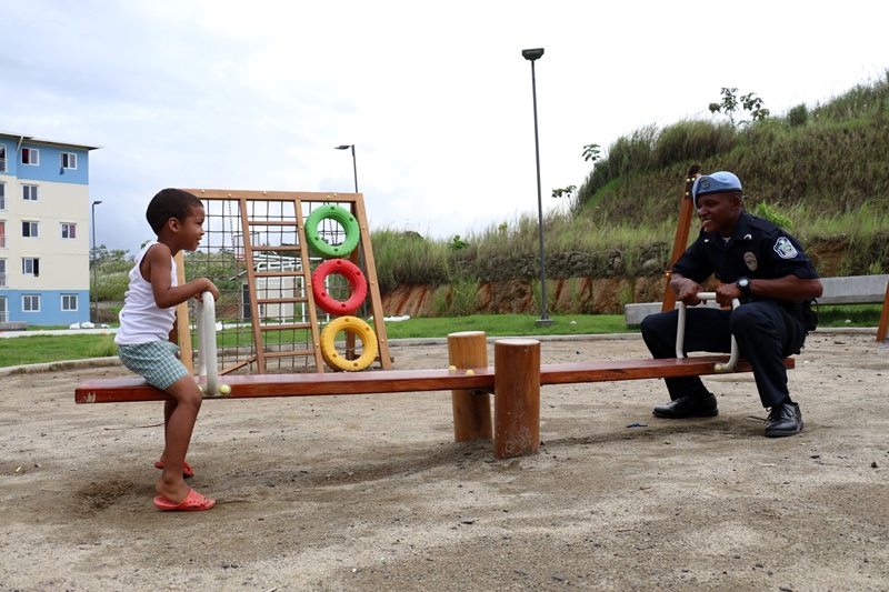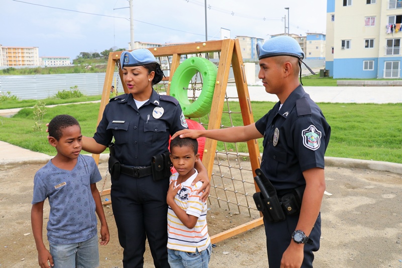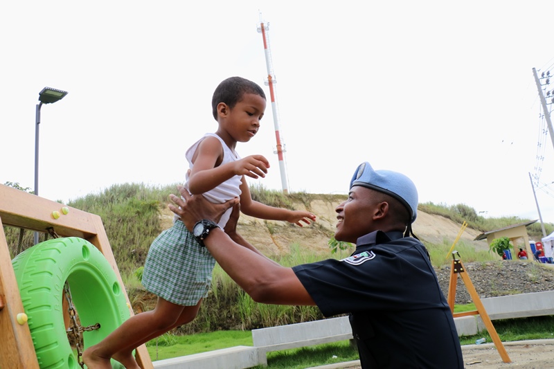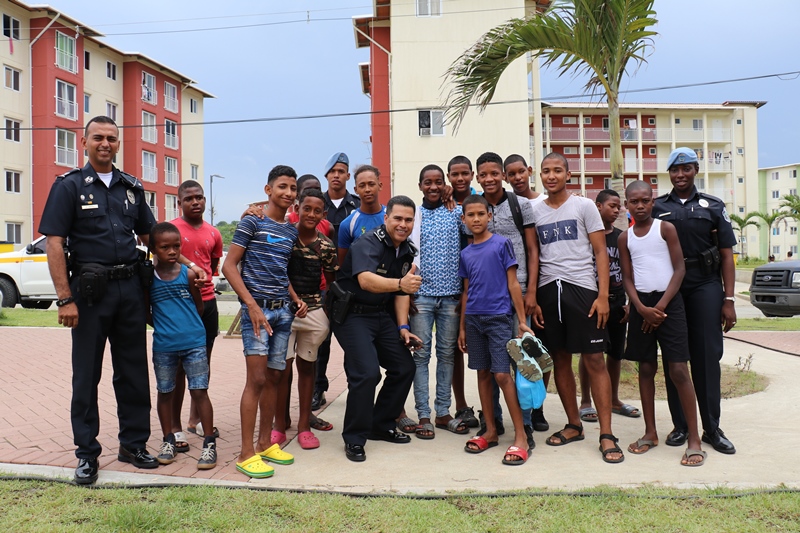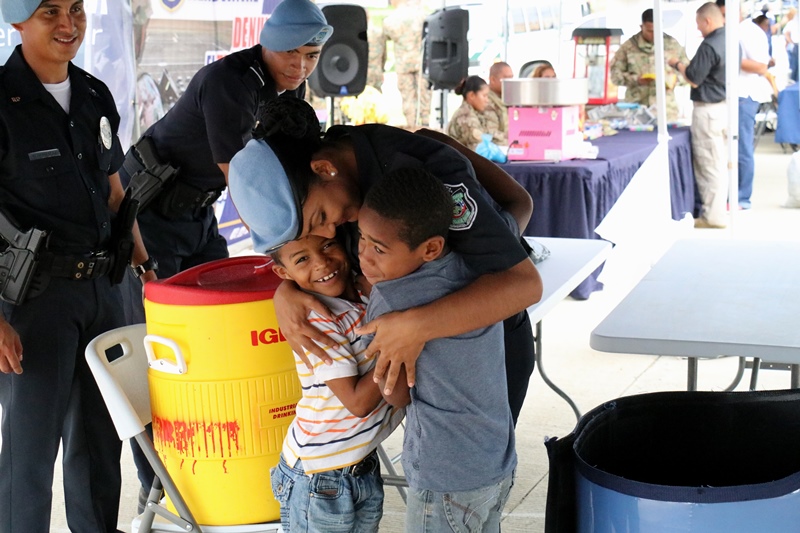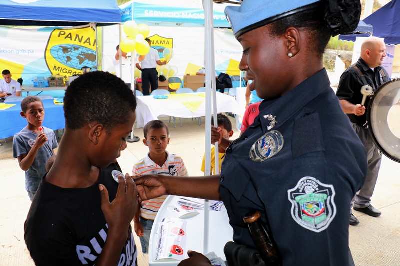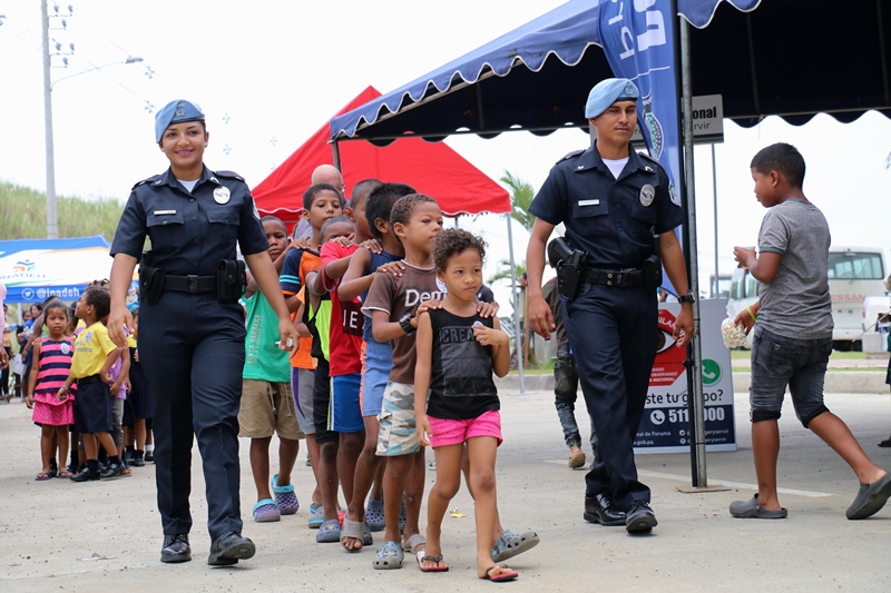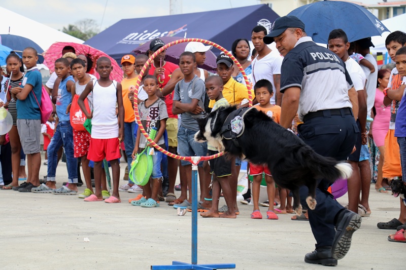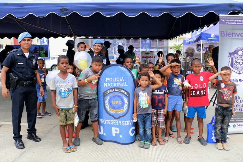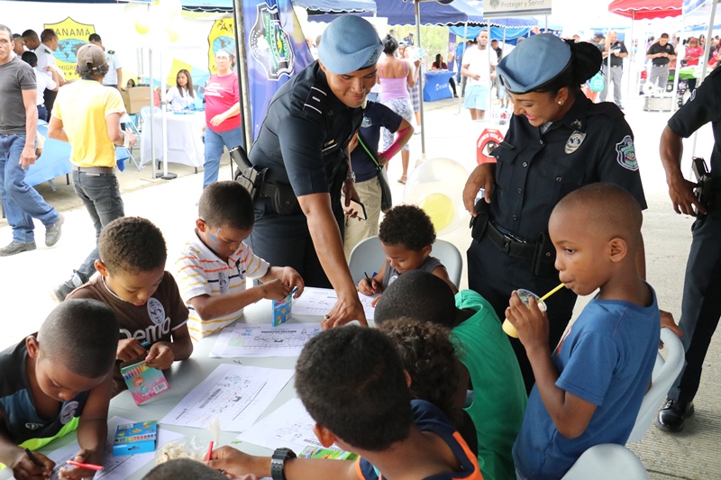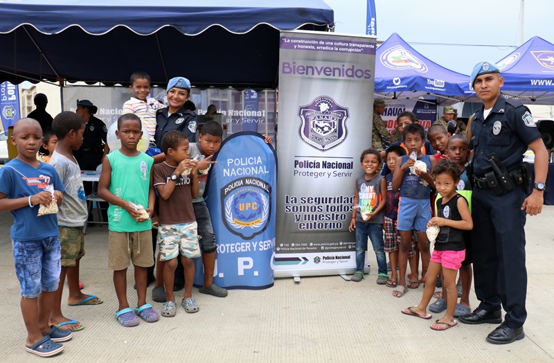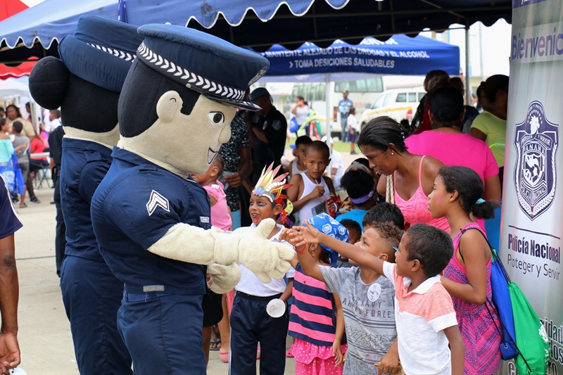 Unidades de la Policía Nacional participaron en la II Feria Interinstitucional Colón 2018, organizada por la el Ministerio de Seguridad Pública (MINSEG), en el proyecto Renovación Alto de Los Lagos, con la finalidad de tener un acercamiento con la comunidad y preservar la convivencia ciudadana. La participación se dio a través de un stand donde el personal de Seguridad Ciudadana, al igual que la Unidad Preventiva Comunitaria compartieron con los niños dando charlas, pintando las caritas, con los brinca brincas y con refrigerios. En la actividad también estuvo el grupo canino, Polita y Polito, la orquesta de la Policía Nacional, quien amenizó en la tarima principal. La feria fue inaugurada por el Ministro de Seguridad Pública, Alexis Bethancourt, también estuvo presente el comisionado Benjamín Sambrano, el comisionado Roger Rodriguez y el comisionado Luis Ortiz encargado de la Upc en el residencial Altos de Los Lagos. |