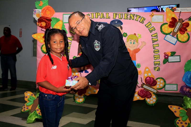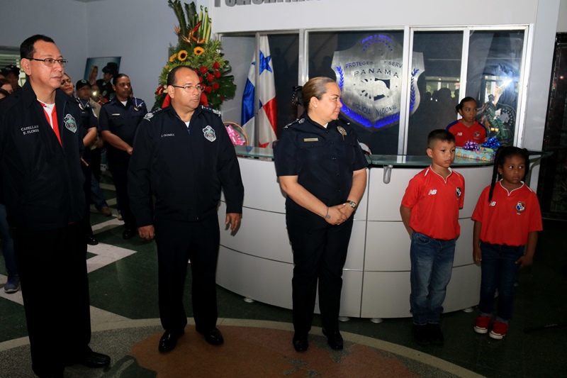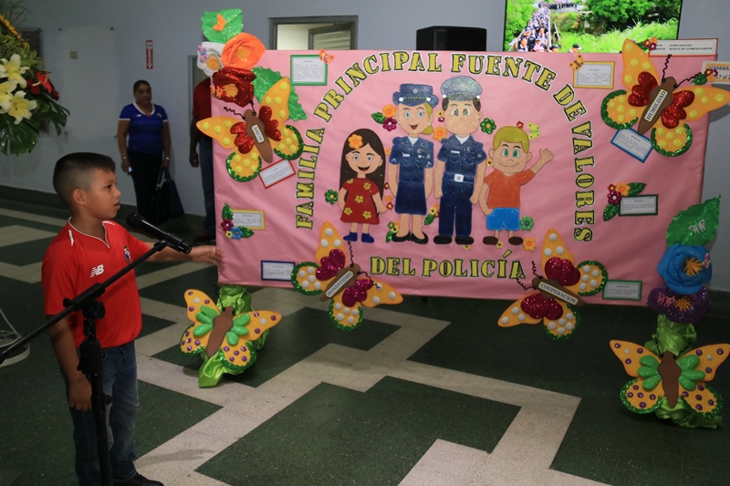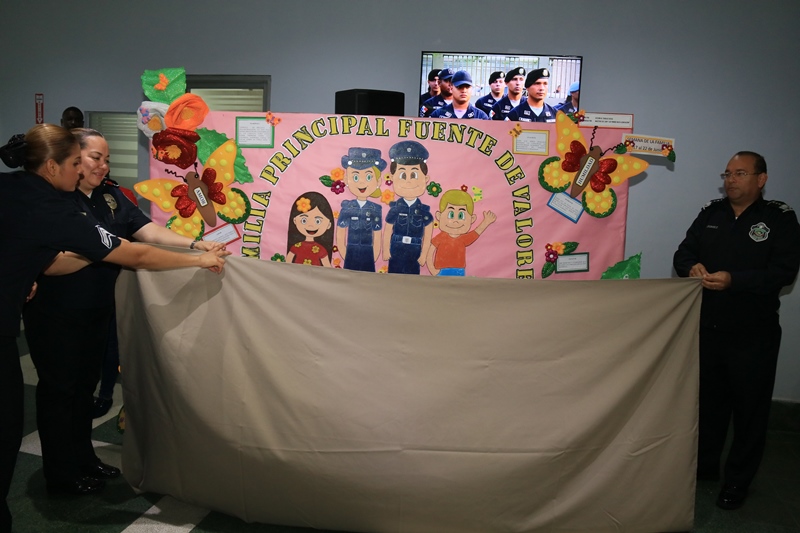 La familia está considerada es una de las fuerzas más poderosas en la educación, la formación de la personalidad y de los valores del ser humano, por ello todos unidos este este lunes 18 de junio en la Policia Nacional celebramos la Semana de la Familia, con la develación de un mural alusivo a la festividad. El Subdirector General de la Policía Nacional, Jacinto Gómez acompañado de la Comisionada Elida Ortega jefa de la Dirección Nacional de Bienestar Policial y Familiar, se encargados de mostrar a los presentes el mural elaborado bajo el lema “Familia: Principal Fuente de Valores del Policía. ”La Familia tiene un valor muy importante dentro de la sociedad, si nosotros la construimos con una base fortalecida no se va a poder derrumbar, el uniformado tiene una familia que cree en Dios y por ello se hace más fuerte” agregó Jacinto Gómez, Subdirector General. En esta actividad los niños del CAIPI Nueva Generación participaron con la explicación del mural y poesías alusivas al día del padre y la familia. La Policía Nacional celebra con una serie de actividades la Semana de la Familia que inició este lunes 18 al 22 de junio. |