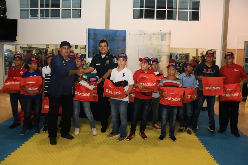 En acto celebrado en el gimnasio de la Policía Nacional, este martes 19 de junio de 2018, se entregaron los uniformes que utilizarán nuestros atletas categoría infantil en el Torneo Pony Béisbol Serie del Caribe 2018 a desarrollarse del 3 al 9 de julio (Categoría 11-12) y del 10 al 16 del mismo mes (Categoría 13-14), en República Dominicana. El Comisionado Porfirio Justavino, jefe de la Dirección Nacional de Transporte dio la bienvenida a los niños y se mostró satisfecho por la participación de los jóvenes en el deporte. “Le damos un saludo de bienvenida a todos los niños participantes del torneo, esperamos que este sea uno de los mejores. También le damos un saludo a todos los padres de familia y esperamos que el apoyo que les están dando a los niños en esta entrega de uniformes se repita en los escenarios”, destacó el Comisionado Justavino Este significativo acto marca el inicio de la fiesta deportiva que durante dos semanas reúne a niños y adolescentes provenientes de diferentes zonas policiales del país, en representación de Panamá y de la Institución. |
