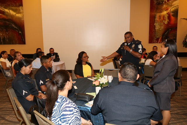 “Realizar talleres, seminarios, conferencias, giras socioeducativas en la semana de la familia, nos permite ayudar, comprender e integrar a las familias de nuestros uniformados; porque la familia es un pilar y parte fundamental en nuestro fortalecimiento como institución” destacó la Comisionada Elida Ortega, Directora Nacional de Bienestar Policial y Familiar, durante una jornada de capacitación celebrando Semana de la Familia. Unos 31 uniformados de diversas Direcciones, Zonas y Departamentos, disfrutaron este miércoles 20 de junio, junto a sus parejas de talleres enfocados a la unión familiar con la ayuda de profesionales de la salud, expertos y personal de Trabajo Social de la Policía Nacional de Panamá. Anécdotas, vivencias familiares, dinámicas de grupo, talleres y debates; fueron algunos de los puntos que se llevaron a cabo, en la jornada que se desarrolló en un hotel de la localildad. El conferencista Marino Tuffano en compañía de Chissell Lima de la Fundación Camino a la Felicidad, mostraron a las parejas diversos vídeos, en el que mostraban de manera práctica a las parejas participantes ¿Cómo ser felices? además de comprenderse para fortalecer a la familia. Esta fundación obsequio a todas las parejas un guía basada en el sentido común para vivir mejor: también se contó con la intervención de la Licda. Ariadna del Rosario y el Padre Vicente Amable Moreno de la Parroquia Sagrado Corazón de Jesús. “Esperamos que estas conferencias logren el propósito por el cual hemos denominado esta Semana de la Familia, fuente de valores del policía; también que los participantes sean agentes multiplicadores de los conocimientos adquiridos”. puntualizó la Licda. Reina de Acevedo, Coordinadora Nacional de Trabajo Social de la Policía Nacional.