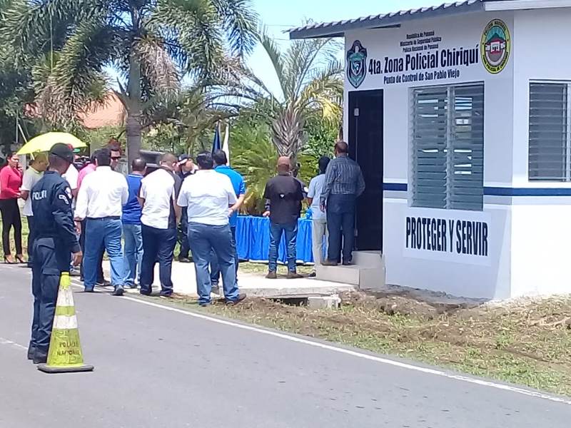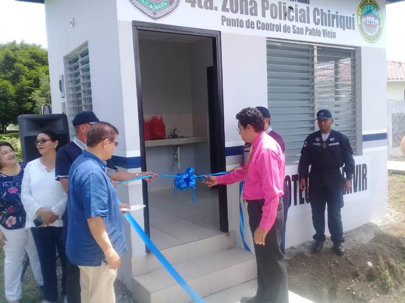 El Comisionado Eric Javier Amaya Sánchez jefe de la 4ta. Zona policial de Chiriquí, inauguró el Puesto de Control Policial de San Pablo Viejo distrito de David. El evento dio inicio con las palabras de reflexión por parte del Capellán de la Zona, Heriberto Ríos y el Doctor Luis Ramón Arias, le correspondió dar la bienvenida a los presente. Esta inauguración se da con la finalidad de fortalecer la alianza con la comunidad en materia de seguridad, tener un mayor control y manejo de la respuesta policial. Se contó con la presencia del Comisionado Teófilo Moreno, ejecutivo de esta zona policial, el Honorable Representante de San Pablo Viejo, Ingeniero René Caballero, el Doctor Luis Ramón Arias, colaborador de las empresas privadas, los señores oficiales, encargados de la diferentes Área policiales de la provincia, el Teniente Lucinio Miranda, encargado del Departamento de Seguridad Ciudadana, los representantes de los grupos de Vecinos Vigilantes. El Comisionado Amaya, destacó que con este nuevo Puesto de Control se reforzará la seguridad en este sector para la tranquilidad de la ciudadanía. “Mantenemos un trabajo en conjunto con las autoridades, empresas privadas comunidad y Policía”, dijo el oficial. El señor Director General de la Policía Nacional, Alonso Vega Pino, ha reforzado el pie de fuerza de la 4ta. Zona, para garantizar la seguridad. Además contaremos con una nueva flota vehicular para realizar más rondas en las barriadas y urbanizaciones”, afirmó el jefe de Zona. Los miembros del programa de Vecinos Vigilantes de Villa Ana, Villa Patricia, Acualina, Urbanización “La Princesa” y Villa Universitarias, agradecieron a la Policía Nacional por el nuevo Puesto de Control y están dispuesto a colaborar en lo que corresponda para el mejoramiento de las instalaciones y de las unidades policiales.